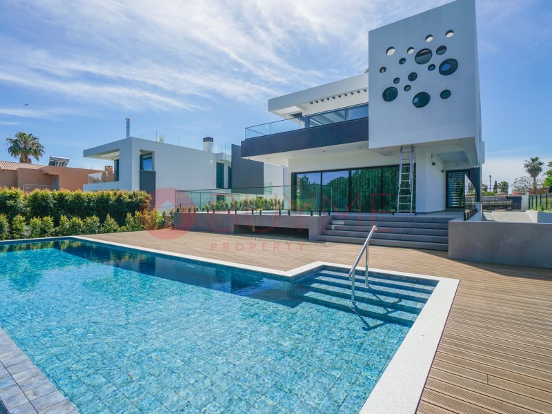 Experience the Algarve lifestyle in this contemporary 4-bedroom villa, bathed in sunlight, featuring a private pool and spacious living areas. Situated in Vilamoura's 'Golden Triangle', enjoy breathtaking golf course views, total privacy, and natural light throughout the day, combining modern elegance with exceptional comfort. Key Features: 4 en-suite bedrooms, 3 with balconies Private pool and garden with barbecue area Open-plan kitchen and dining area with outdoor access Versatile lower f...