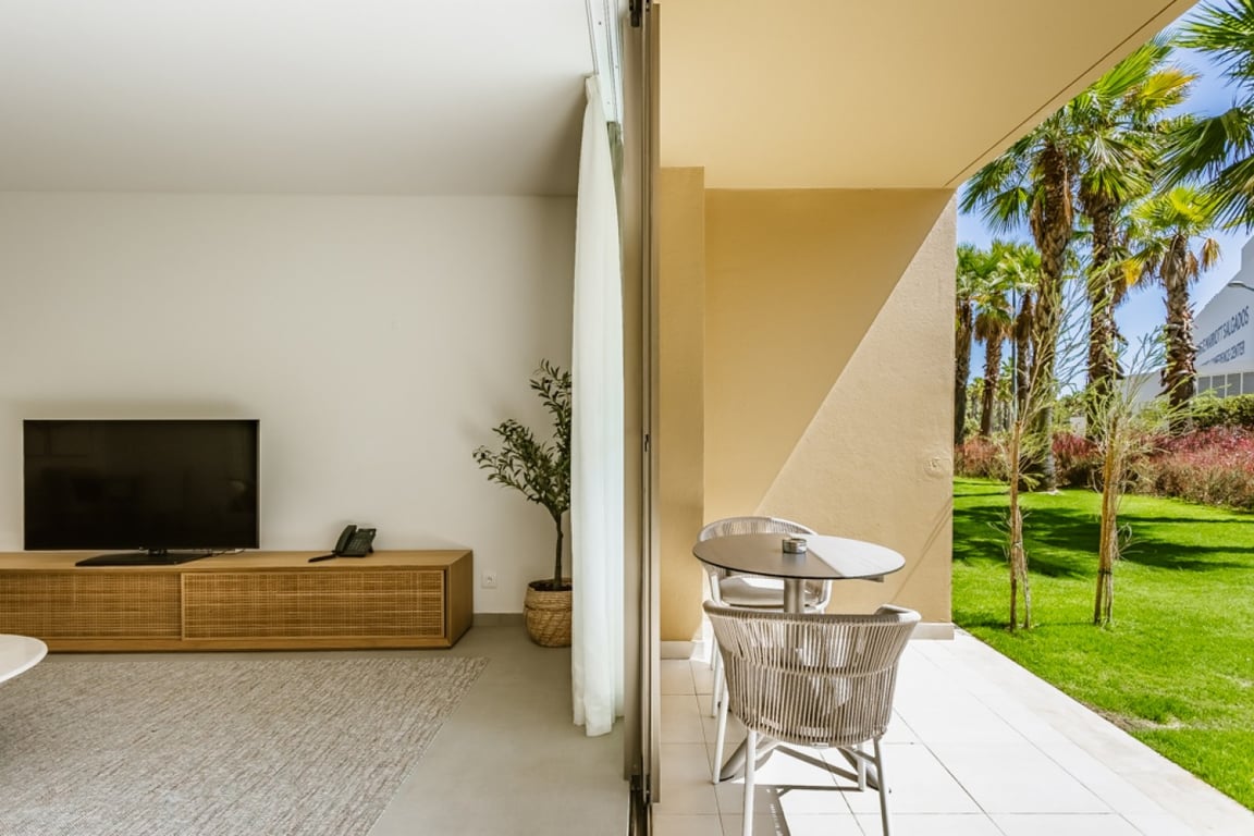 Introducing this elegant studio +1-bedroom apartment located in the prestigious Flamingos tourist development, set in the exclusive Herdade dos Salgados, just 600 meters from the beach and close to golf courses - a privileged location that combines tranquillity, sophistication and proximity to all amenities. With spacious areas and excellent sun exposure, this apartment stands out for its modern open-plan design, where tasteful decoration and the use of organic materials create a welcoming, co...