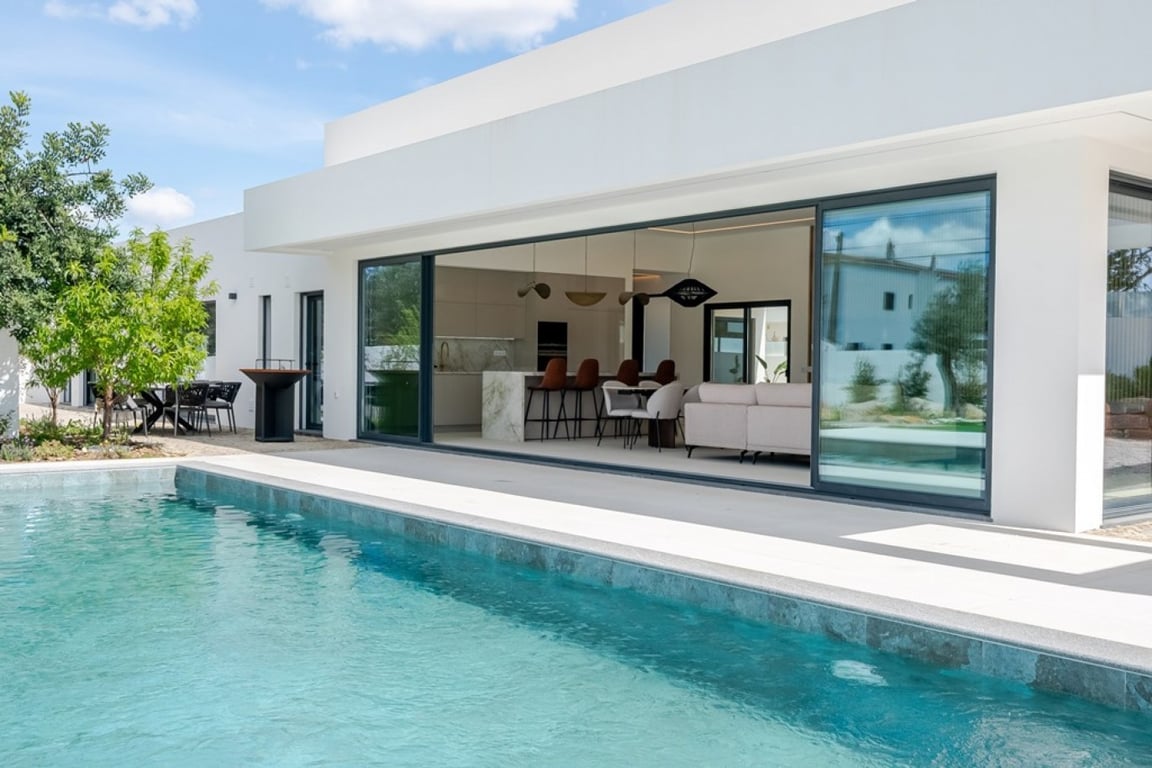 Luxurious, recently built villa in a modern and contemporary style, tastefully decorated, in São Brás de Aportel, Algarve. The property comprises a living room and fully equipped open-plan kitchen with a cozy pellet fireplace to enjoy on cooler days, 4 bedrooms, 3 of them en-suite with dressing rooms. Outside, there is also a 48m2 swimming pool , parking for 3 cars and a leisure area with a dining area ideal for the mild days in the Algarve. The property is spread over a single floor, as it w...