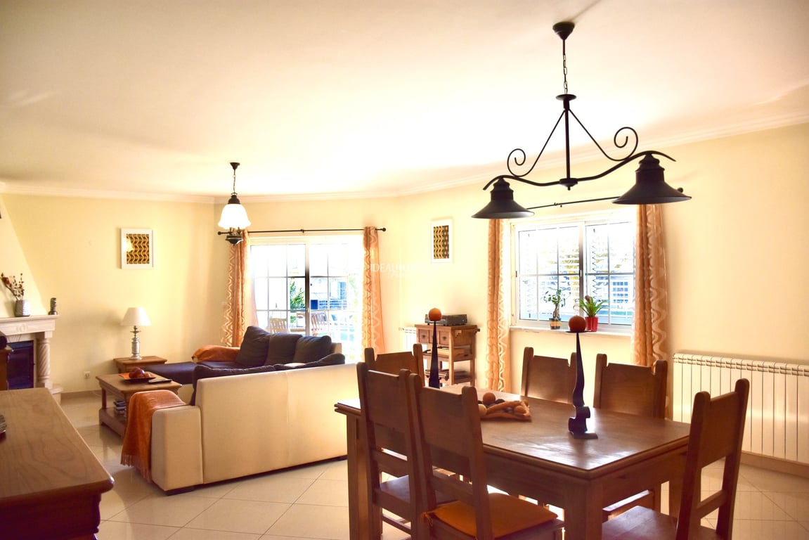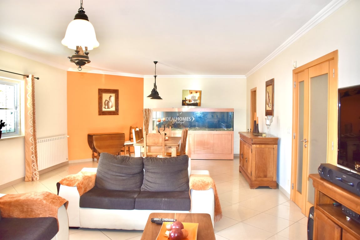 This five bedroom townhouse for sale is situated in a residential area of Azeitão, in Setúbal. Set within a private condominium and within a short distance from all necessary amenities, this property was built in 2009 and spreads across two floors and a basement. On the ground floor, this property comprises an entrance hall, a large living room featuring a cosy fireplace and designed in open plan with a dining area, a fully equipped kitchen, a guest bathroom, and a versatile room currently used...