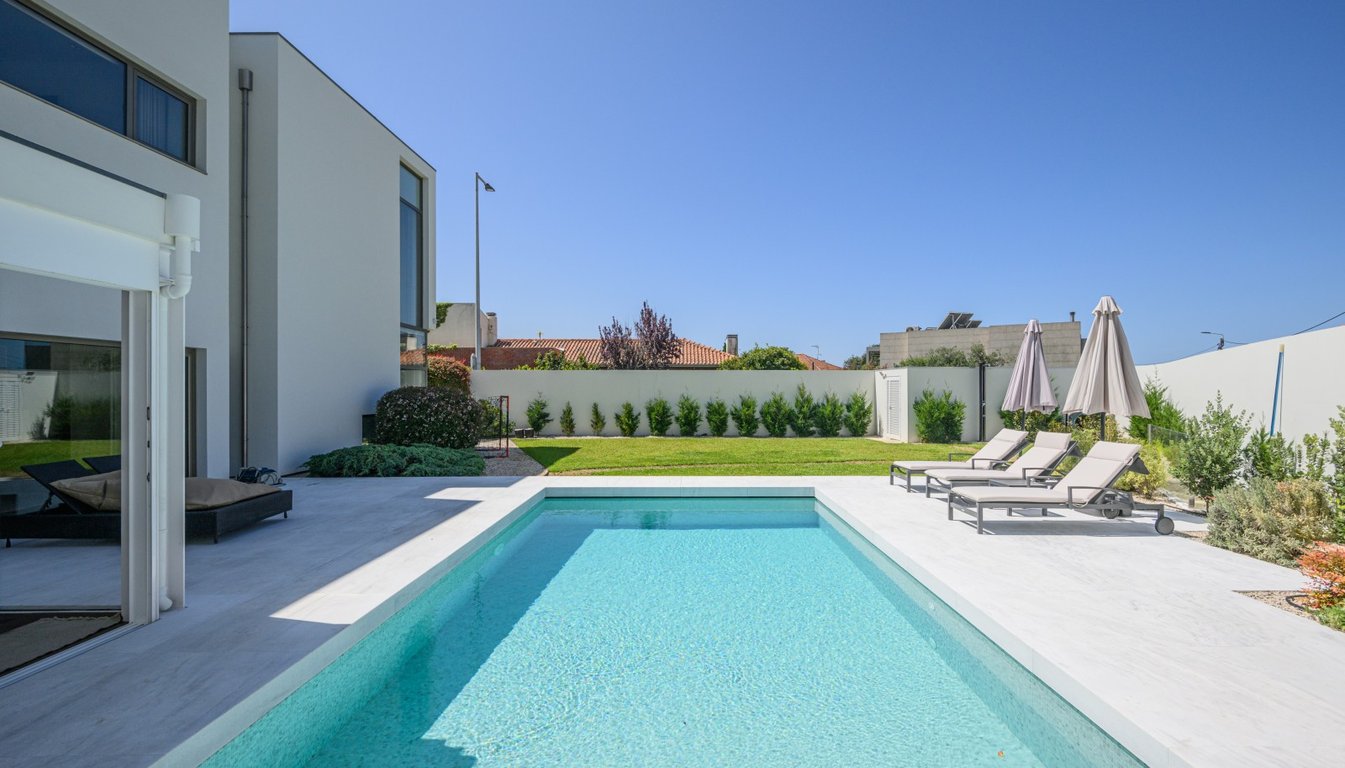 Fabulous modern villa, with pool, for sale, in Francelos, Vila Nova de Gaia. House spread over two floors, which stands out for its practical and functional layout, large areas, excellent lighting and plenty of storage. The social area is on the first floor and consists of an equipped kitchen, office and a living room with common space and dining room with access to the outside. On the upper floor is the private area, consisting of 3 bedrooms, one of which is a master suite. All bedrooms hav...