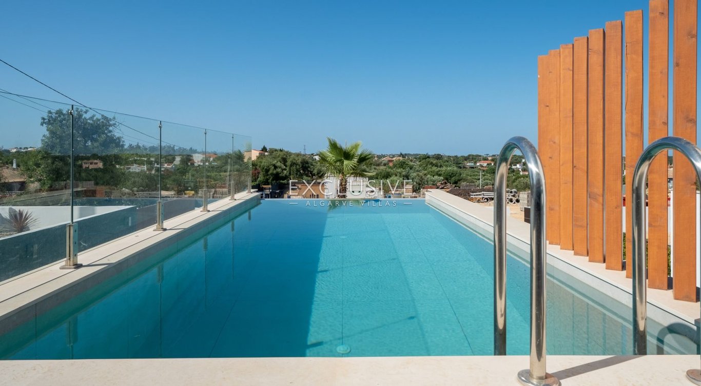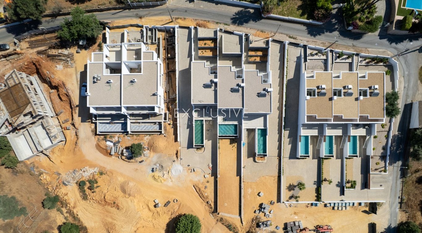Brand new contemporary home, located in Almancil close to amenities. Ready to be moved into, this villa offers quiet surroundings, distant seaviews and confort interior. From a small gate on a quiet street, you enter your villa through a small private garden. On this street level, you will enter into a hallway leading to an office on the left side, followed by a shower room and two bedrooms ahead. One of these bedrooms is the master suite, with a dressing area and private bathroom. Both bedroo...