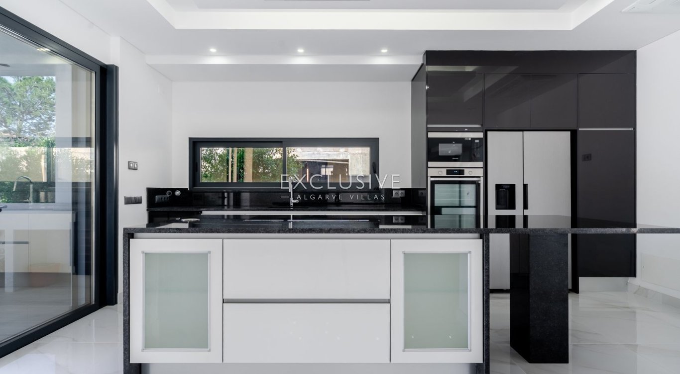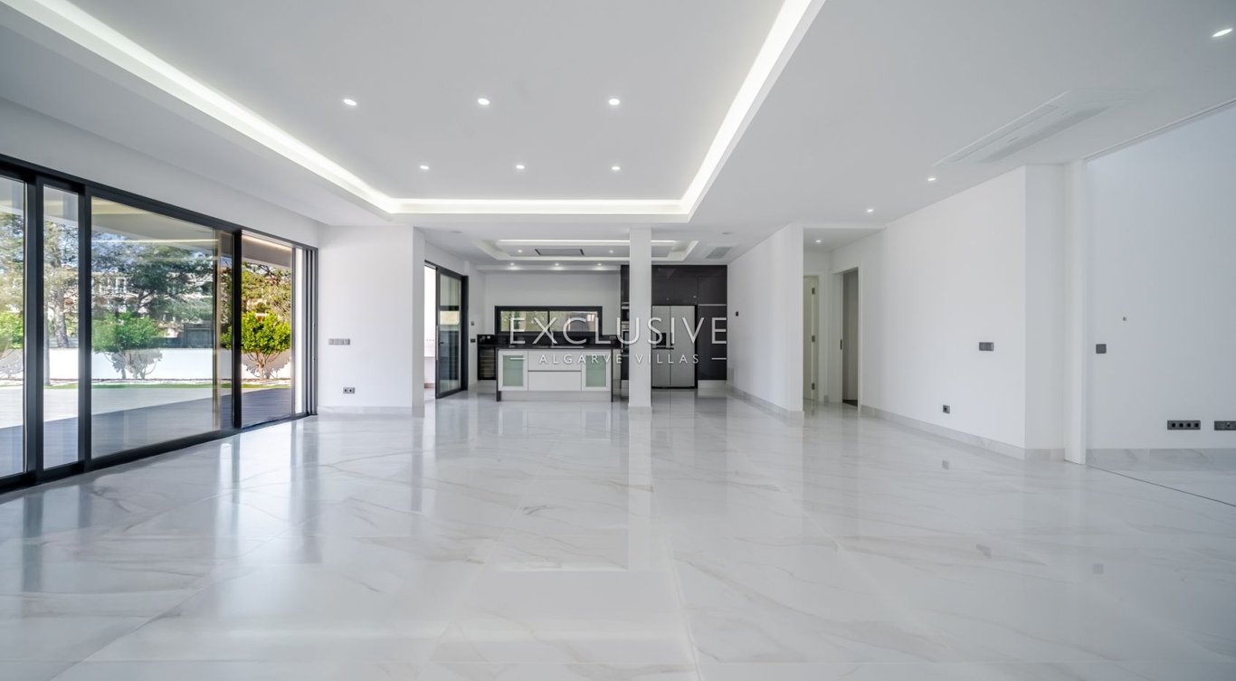 Brand-new contemporary semi-detached villa in a prime Vilamoura location, just a 5-minute walk from the marina, beach, and all essential amenities. Set on a 697 m2 plot, the property offers 419 m2 of built area, combining high-end finishes with a spacious and highly functional design. The villa features a bright open-plan living and dining area, filled with natural light and seamlessly connected to the outdoor spaces, including a landscaped garden with automatic irrigation and a heated saltwate...