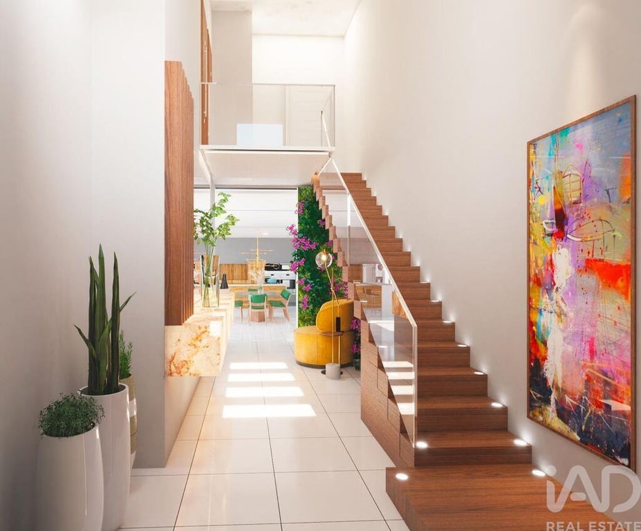 4-bedroom semi-detached house, in the pipeline, with modern architecture, located in the centre of the parish of Castelo de Neiva - Viana do Castelo 2-storey villa with feng shui architecture and a high-quality finish comprising : On the ground floor : - Entrance hall - open space with fully equipped kitchen (with hob, oven, extractor fan, combi, microwave and dishwasher), living and dining room - service bathroom - a suite On the 1st floor : - a master suite - 2 bedrooms with built-in wardrob...