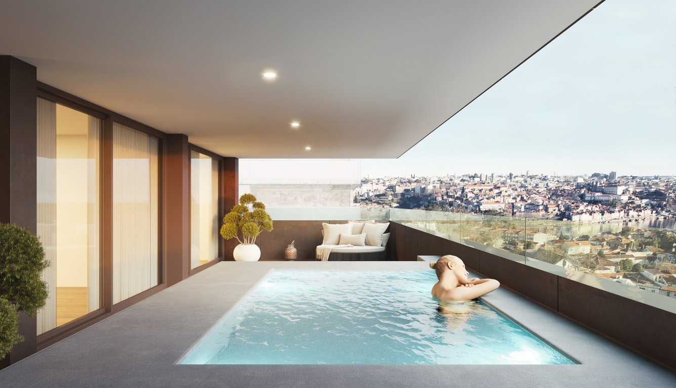 Elegant and refined two-bedroom apartment for sale in Douro Nobilis - River View, a condominium with generous balconies, a rooftop swimming pool and a running track. This 2-bedroom apartment with balcony and private pool is spacious and has high-quality finishes that add elements of sophistication and well-being, such as aluminium window frames, double glazing with a double glazing system.double glazing with sun protection and sound reduction, as well as thermally insulated blinds that guarante...