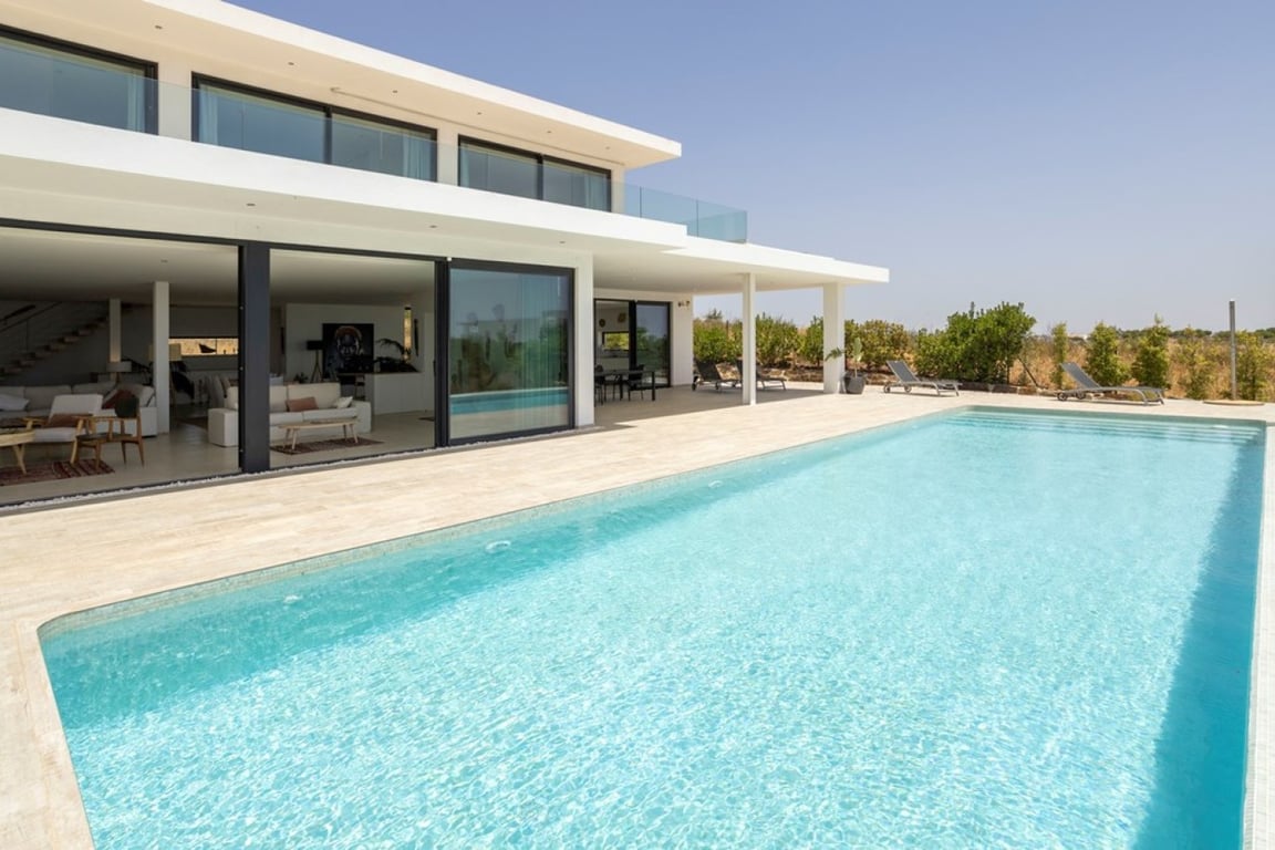 Luxury 5-bedroom detached villa with stunning sea views in Monte Rei Resort, Algarve, Portugal. The huge floor-to-ceiling windows not only flood the space with natural light, but also give direct access to the pool area, creating a harmonious flow between indoor and outdoor living. A vast open-concept space on the main floor seamlessly integrates the kitchen, dining room and living room. The modern kitchen features a central island, perfect for casual dining and entertaining. It also contains...