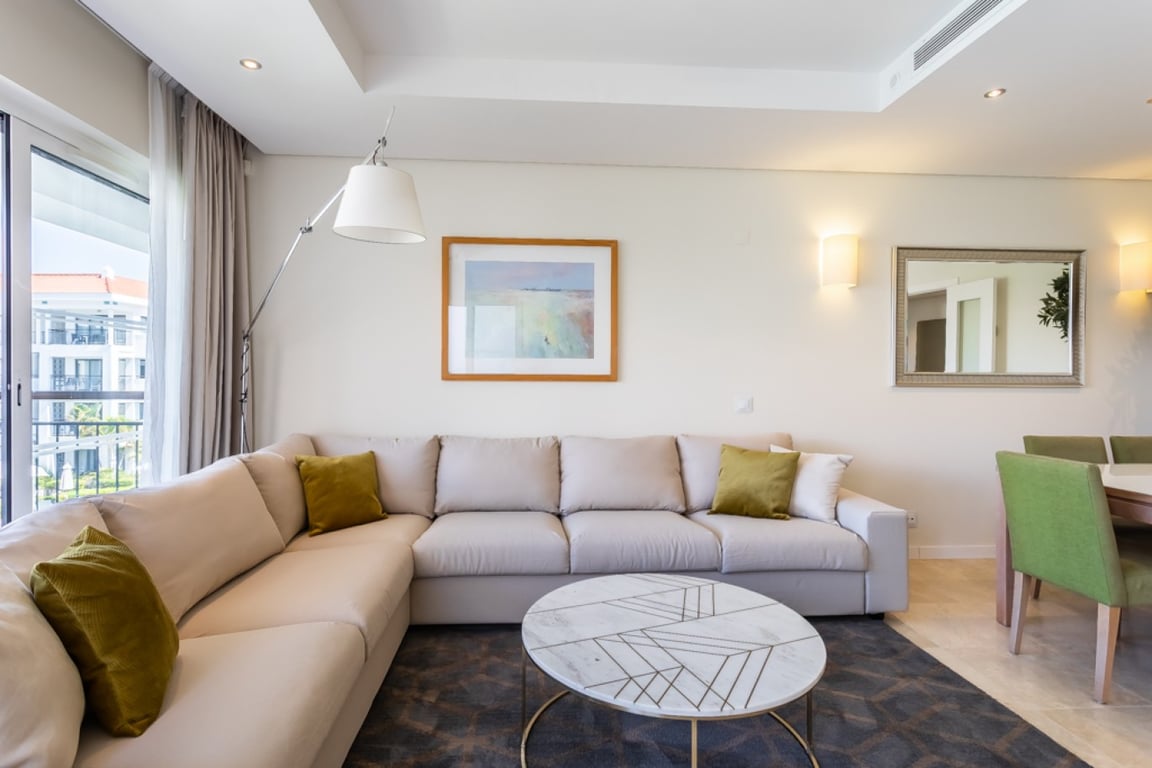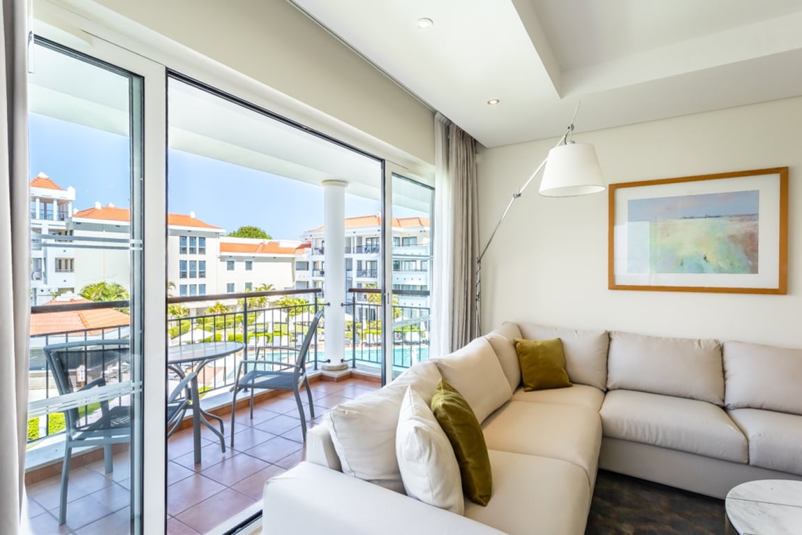 Luxurious 2-bedroom apartment in the Hilton Vilamoura "As Cascatas Golf Resort & Spa" for sale in the Golden Triangle, Portugal. This apartment has generous areas and sun exposure to the south / west, being a magnificent property endowed with unique luminosity. The apartment is fully furnished and is located on the top floor. It comprises 2 bedrooms, 1 of which is en-suite, a large living-dining room and a fully equipped kitchen . It has direct access to its large balcony from both bedrooms...