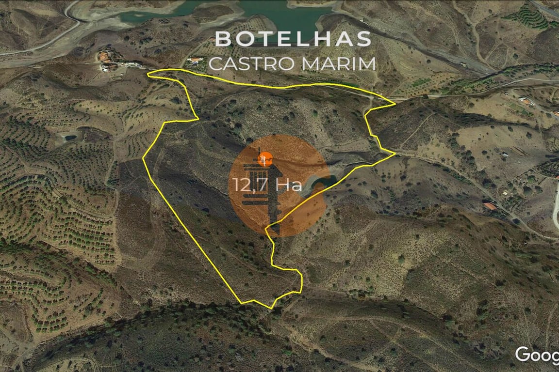 Land with 12.7 hectares, near the Dam, Ribeira da Caroucha - Castro Marim - Algarve - Portugal. Land with 1,200sqm of urban area for construction of houses and warehouses. 12.7 Hectares of Land for Sale. Urban area for construction. Land with some trees and with easy access. Possibility of construction of detached houses, Rural Tourism, Rural Hotel. Ecological Tourism Project, Agriculture. Good hits. Quiet and private place. Possibility to have your Homeland, your Farm in the Algarve or y...