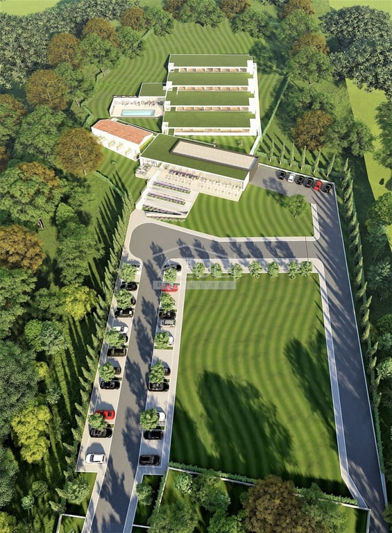 This innovative architectural project elegantly bridges the essence of the past and the present, seamlessly combining a traditional house and its surrounding scenery with the modern design of the hotel. The amenities include 16 apartments, each composed of a bedroom, living area with kitchenette, and bathroom, along with five double rooms, all featuring private bathrooms. Two of these double rooms are connected. The communal spaces are split between a restaurant that accommodates 72 people, a t...