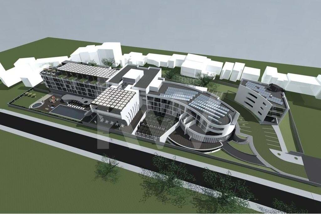 The development consists of 80 accommodations / apartments, areas of commerce, services, restaurants, medical clinic, spa, parking and leisure areas. It is a building with three floors, designated as core I. The accommodation/apartments are divided into the following types: 2T2, 3T1, 54T0 and 21 rooms, with a total capacity of 164 users, in 82 double beds. The buildings include main services for common and private use of the hotel, an independent clinic, SPA. Panoramic restaurant, cafeteria, bar...