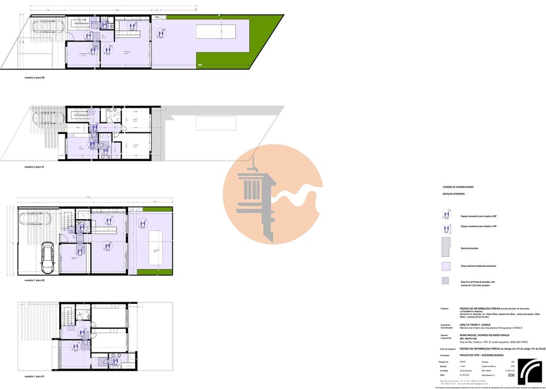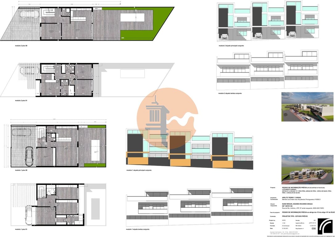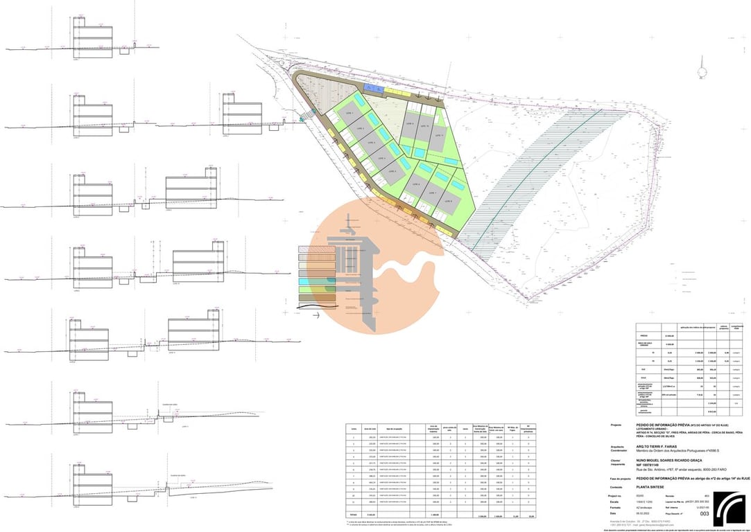 Flat land with approved residential project for allotment consisting of lots for single-family houses, in band, with swimming pool. Each plot has an area of 100sqm and 200sqm of construction, swimming pool and 3 parking spaces. The implantation area foresees 2 floors above the threshold level, one in the basement destined exclusively for the technical area and a stairwell to access the roof. The land is located 5 minutes from the center of Armação de Pêra, known for its extensive beach, benef...