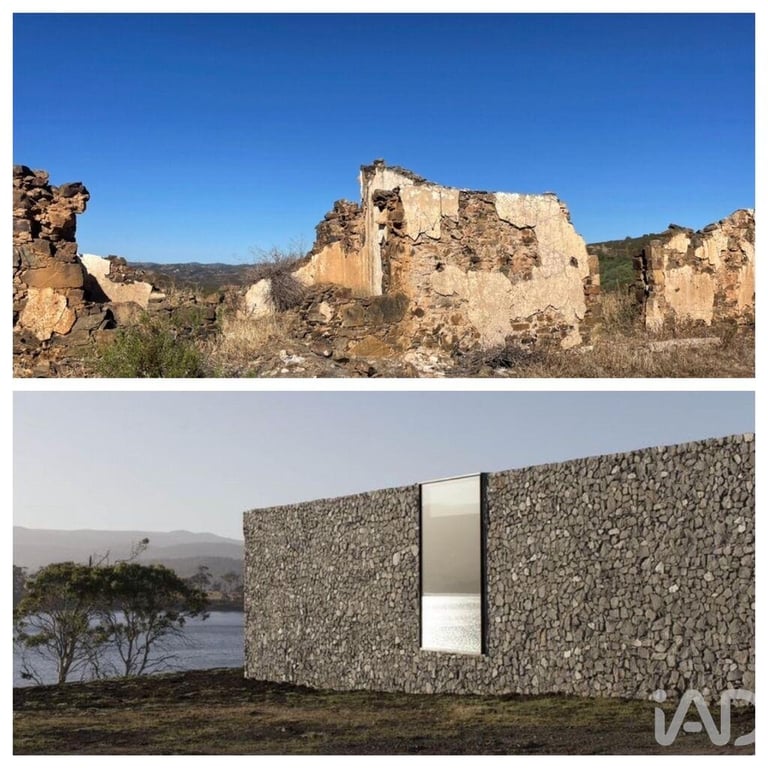 Ruin of a typical single-storey house for complete renovation in a quiet village in Barrocal, in Portela das Cruzes, near Tavira. With an area of 207m2, it allows you to create a stunning house with sea views, perfect for transforming into your holiday retreat or your own home surrounded by the tranquility of Nature. The ruin has stone walls in keeping with the traditional construction of the Algarve mountains. These features allow the new space to be given character, contributing to the cre...