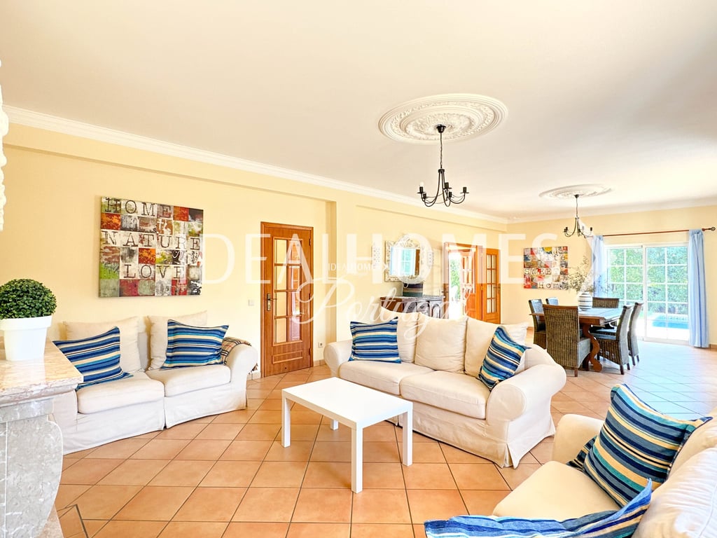 This four bedroom villa for sale is located on the outskirts of Almancil, just a short drive away from all essential amenities and the pristine beaches of Vale do Lobo and Quinta do Lago. Spread across two floors, this villa comprises a large living / dining room featuring a cosy fireplace, a fully equipped kitchen complete with a second dining area, four spacious bedrooms, four bathrooms and a L-shaped terrace on the first floor that provides distant sea views. Outside, this property offers e...