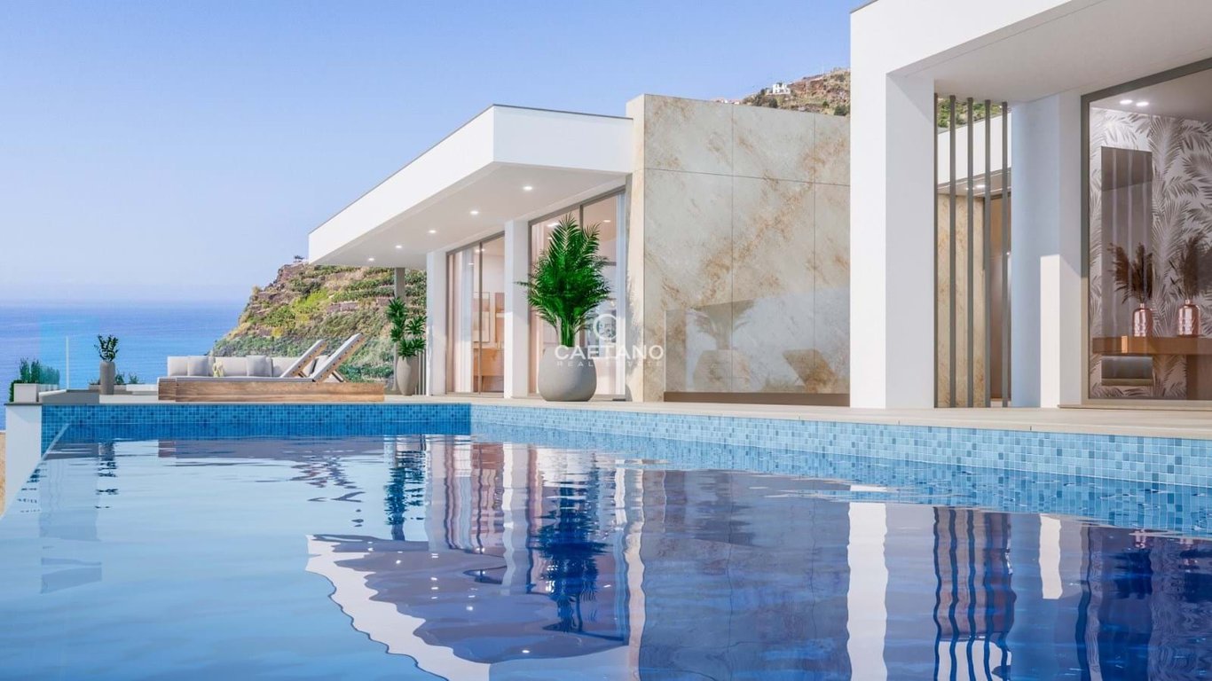 Ocean I Residences Modern Villa with professionally designed interior, is in the completion phase on a plot of 1300 m2, with a construction area of 720 m2, elegance and Luxury will be redefined in the best location west of Madeira Island. . Plot land area: 1300 m2 . Plot for construction: 720 m2 1: Solar Panel Included 2: Swimming pool and house heat pump included 3: PV panel included 4: AC is included 5: Central vacuum included. Indulgent Features Await You: Four Lavish Bedroom Suites: Ea...