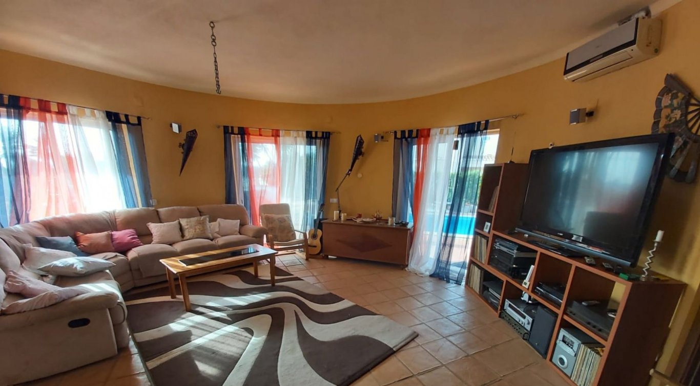 This four bedroom villa is located in an urbanization near the sea, surrounded by luxury villas and seaviews. The property is all on one level. From the entrance, you are led forward to the main lounge area, with a separate tv room, dining room and kitchen with laundry room. The bedrooms, all on right side of the entrance, are all ensuite with built-in closets and a separate guest w/c. One of the terraces has been converted into another sitting area, which can be also a guest bedroom with a kitc...