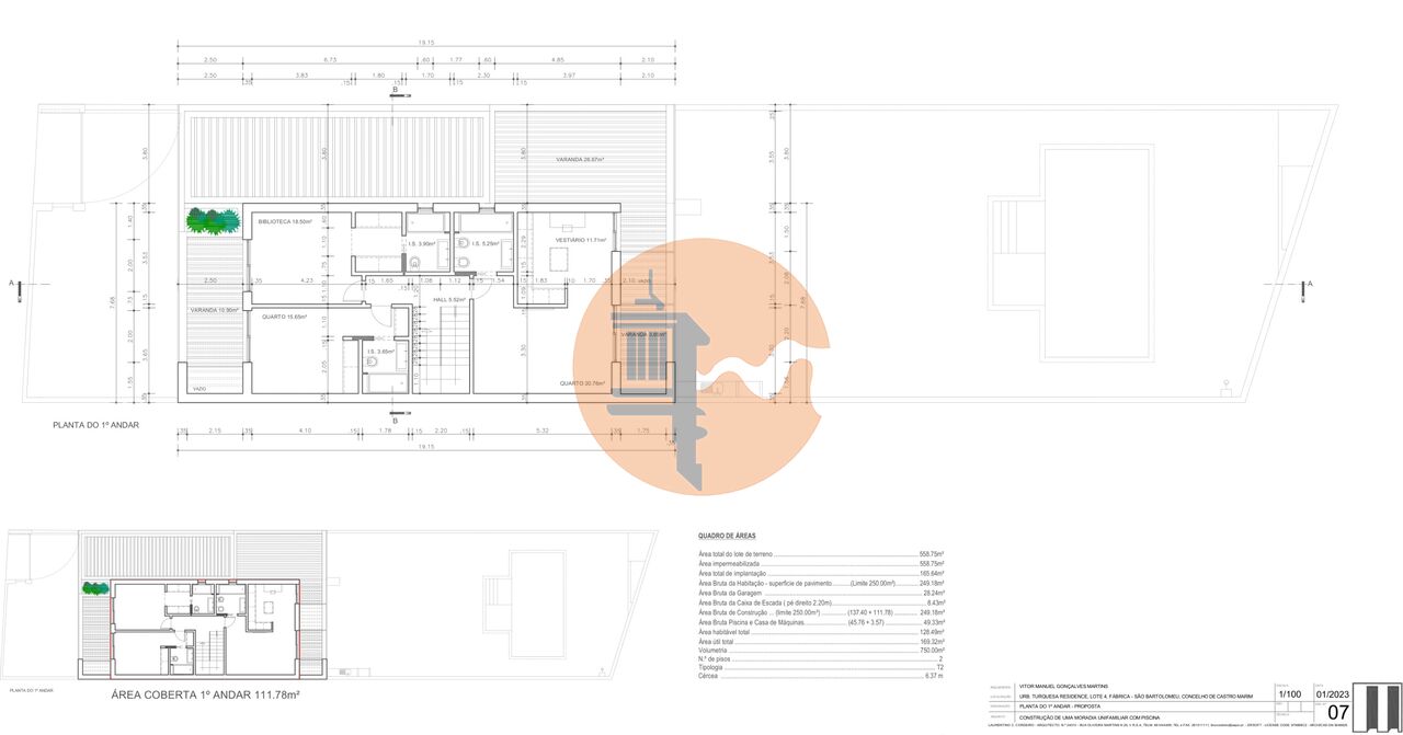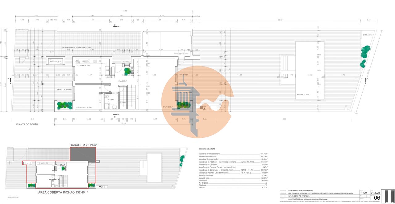 Detached 4-Bedroom Villa with Pool Under Construction in São Bartolomeu, Castro Marim - Modern Design, Quality, and Prime Location We present this detached villa of contemporary architecture, currently under construction, located in São Bartolomeu, Castro Marim a peaceful and rapidly developing area in the Eastern Algarve (Sotavento Algarvio). The property stands out for its 558.75sqm plot, with a footprint of 165.64sqm, a total construction area of 249.18sqm, plus a garage of 28.24sqm and a m...