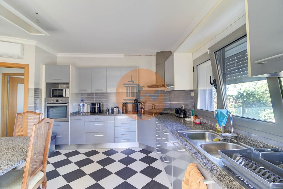 4 Bedroom detached house with 2 floors on a 4040sqm plot, with garage and covered porch, offering magnificent views! Located in Sítio da Bernarda, north of the EN 125, in a quiet area with plenty of privacy. The entrance has an automatic gate and ample outdoor space for parking. The ground floor comprises: Spacious hall Fully equipped kitchen with pantry BBQ area Living room with fireplace and plenty of natural light Air conditioning WC The stairs to the second floor lead to: Suite with air...