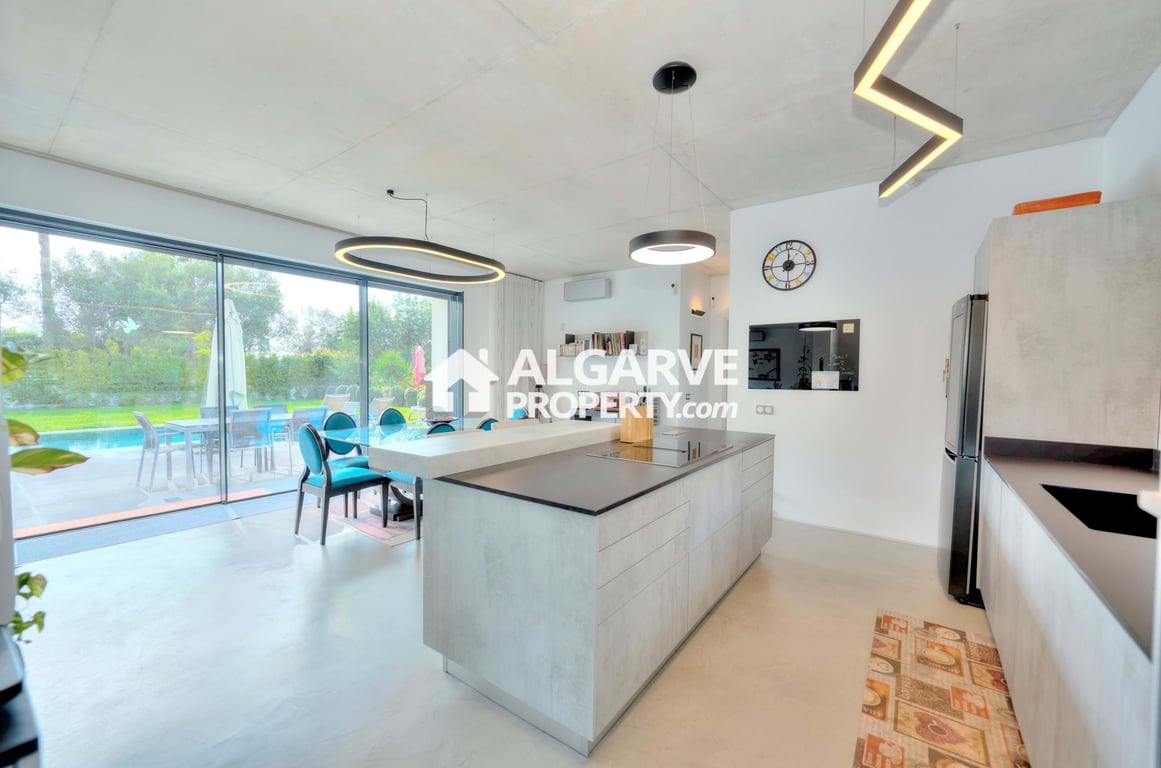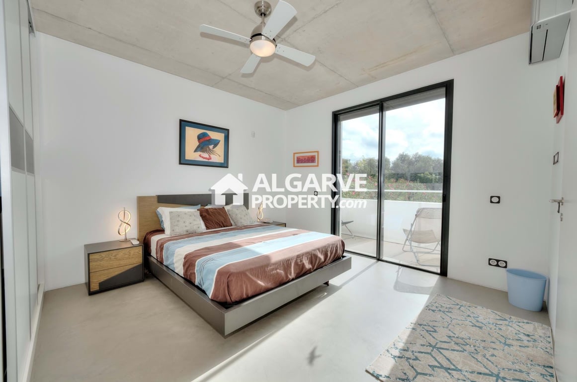 Come and discover this modern villa, located in Escanxinas, very close to the centre of Almancil and just a short distance from the fabulous beaches of Quarteira. With 4 bedrooms — all en-suite — and 5 bathrooms, this stunning property offers a generous area of 360 sq.m. set on a plot of 865 sq.m. Upon entering, you are welcomed by a modern architecture with high ceilings, creating a sense of openness and space. On the ground floor, there is one en-suite bedroom, a guest bathroom, a living roo...