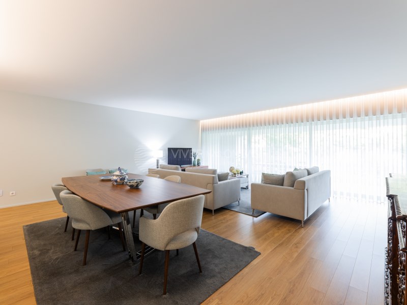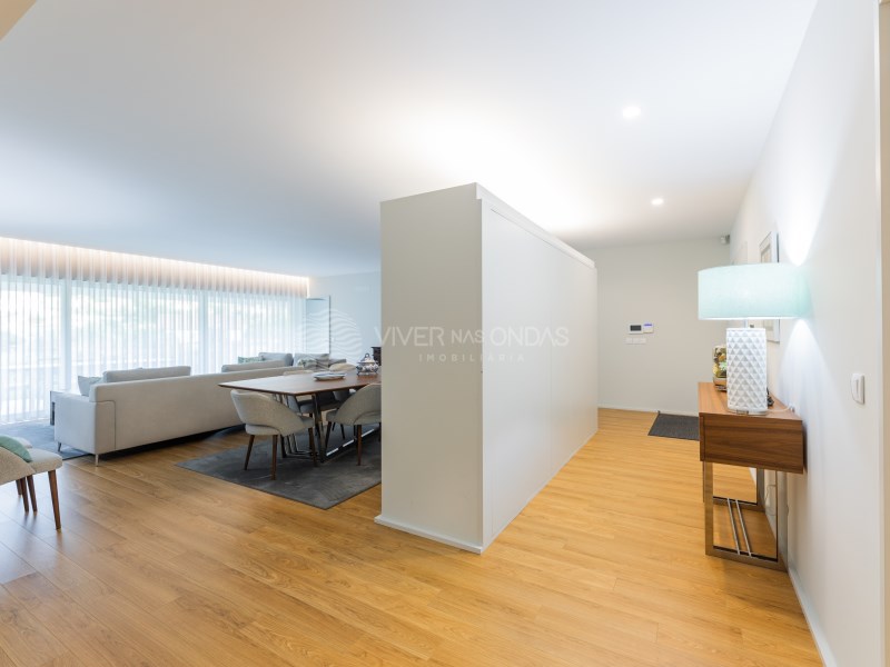 Offer of the deed of purchase and sale* and complete management of the financing process, with the best solutions on the market. Single storey house T4 + office, semi-new (2022), located in São Mamede Este - Braga. It stands out for its modern design, excellent materials and high level of comfort. The villa is organised in two distinct environments: Social zone - Entrance hall with wardrobe - Large living room with direct access to the terrace - Furnished and fully equipped kitchen (oven, hob,...