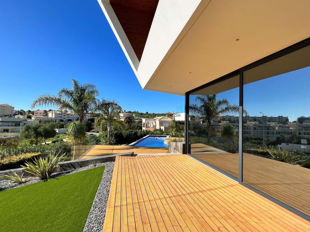 Stunning modern villa close to the beach of Porto do Mos in Lagos. High quality villa with pool and beautifully landscaped garden. This brand new and luxury property has everything you could wish for and more. Located in an up and coming exclusive development walking distance from the beach. Underfloor heating, air conditioning, solar system, electric blinds, heated pool, jacuzzi, sauna, garage, utility room, automatic irrigation, heated pool, fitted and equipped kitchen using only the bes...