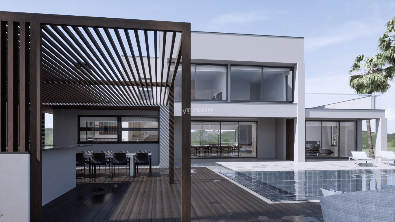 LUXURIOUS 4 BEDROOM VILLA OF MODERN ARCHITECTURE WITH SWIMMING POOL LOCATED IN THE FUNCHAL AREA OF LAGOS. This luxury VILLA consists of a basement for garage and 2 more floors where you will find on the ground floor 1 bedroom en suite, a beautiful Bosch equipped kitchen with, Induction hob, ventilation hood, oven, Microwave, Fridge, Washing machine, Dishwasher, Single lever tap, Tumble dryer, Freezer, Walls covered with rectified ceramic, Postforming furniture, Silestone or natural stone workto...