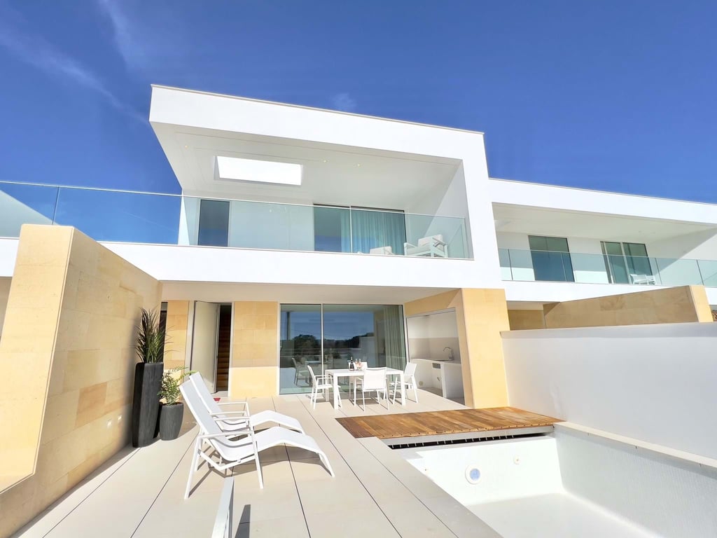 Discover a new, modern three-bedroom villa in Lagos, featuring a captivating backyard that guides you to the main entrance and a garage for two cars. To the right, a swimming pool adorned with glazed ceramic tiles and surrounded by a waterproof deck awaits, along with a pre-equipped space for a gas grill and a Dektone worktop sink, perfect for outdoor entertaining. Inside, the splendid open-concept living room seamlessly integrates with the kitchen, highlighted by solid oak wood accents on the s...