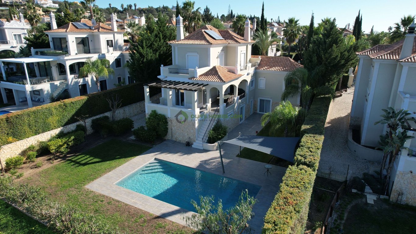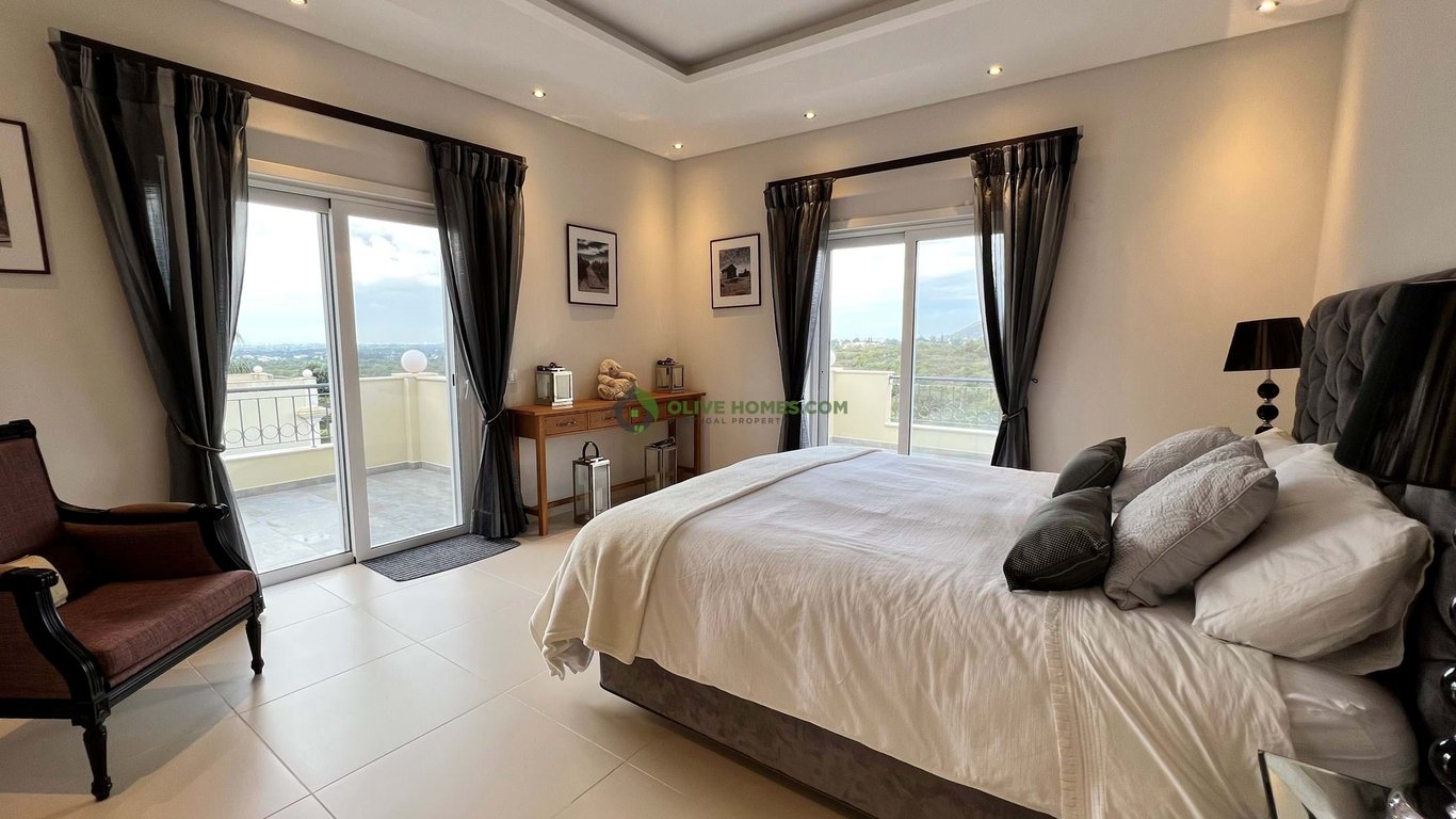 A delightful Villa with countryside views and sea views located in a popular residential resort in the Vale Formoso area just to the north of Almancil. This is a large four plus two bedroom property with a private garden and pool area with high wall divisions for added privacy. On entering the property from the large gated driveway/parking area, the entrance hallway leads to the fully fitted kitchen and dining room/lounge area. The lounge offers great views and overlooks the pool and spacio...