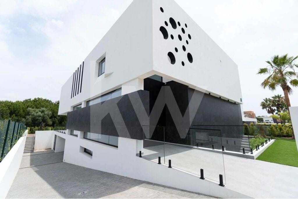 House T4 in Vilamoura, AlgarveModern construction villa, located in Vilamoura next to one of the golf courses, consisting of 3 floors, swimming pool and outdoor space with garden.Ground floor: Main entrance has a common hall on the ground floor and 1st floor, with stairs to the 1st floor and basement/garage made of wood; kitchen, dining room and living room in open space with the right side and front with sliding glass doors that give access to the outdoor garden and swimming pool; 1 bedroom en ...