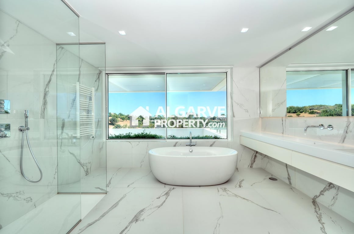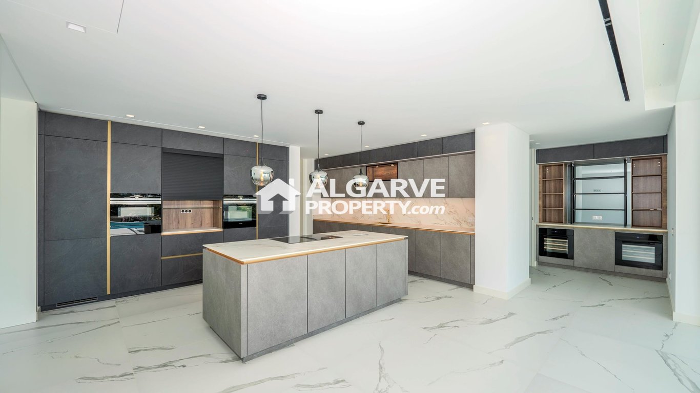 This impressive five bedroom detached villa excellently located on a very quiet area close to the city of Almancil and nearby to all amenities. Set on a 2.415 sqm plot with 674 sq.m. of built area, this contemporary style villa comprises of a grand double-height entrance hallway leading to a spacious open-plan ground floor. This level features spacious living and dining areas, and a state-of-the-art kitchen. Step outside to an outdoor kitchen with a grill, a lounge, and a dedicated entertainme...