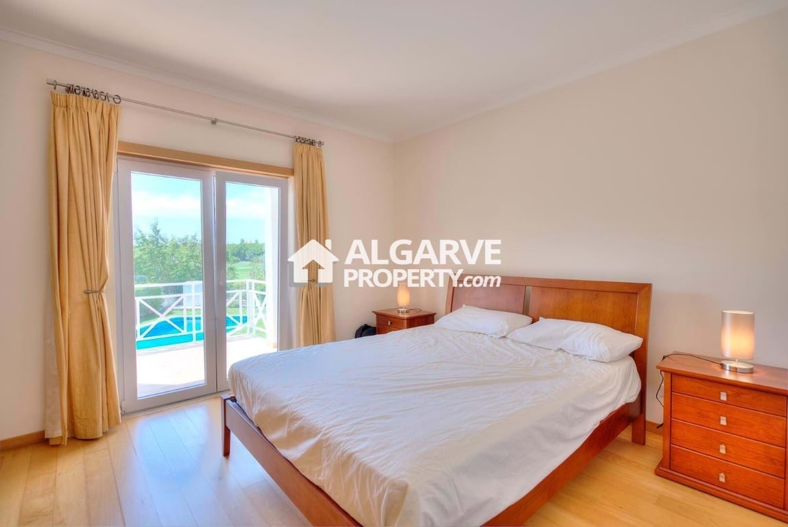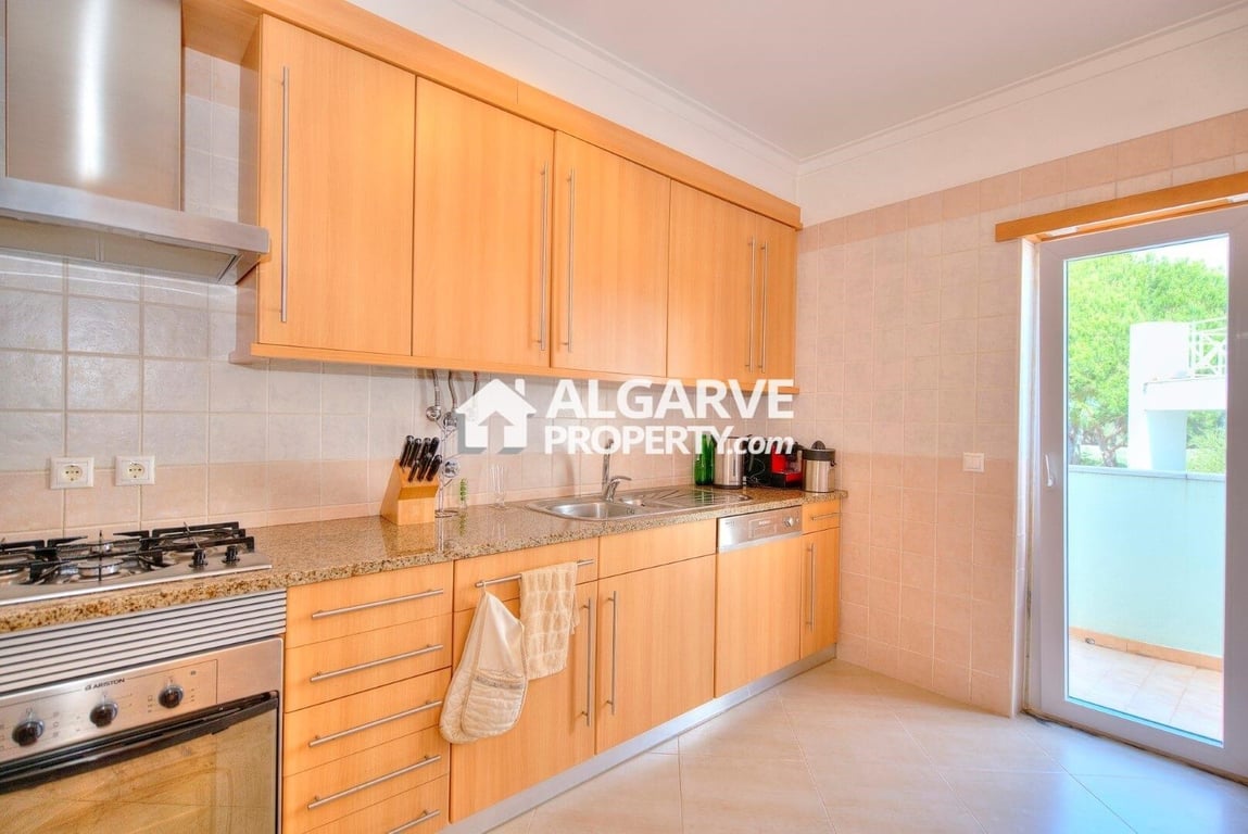 Fantastic two-bedroom townhouse excellently located in a very quiet and exclusive area of Vilamoura, inside the golf course and only 5 minutes drive to the Marina and the beach. With 129 sq.m. of built area this villa has a lovely communal garden and swimming pool. The property comprises a beautiful lounge, a fully equipped kitchen with many cabinets, two bedrooms, and two bathrooms. Two terraces with views over the Millennium golf course. The property is sold furnished and comes equipped wit...