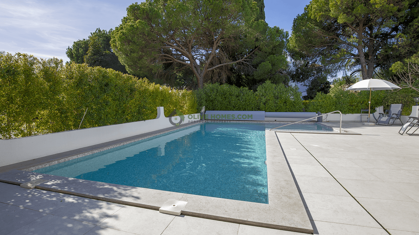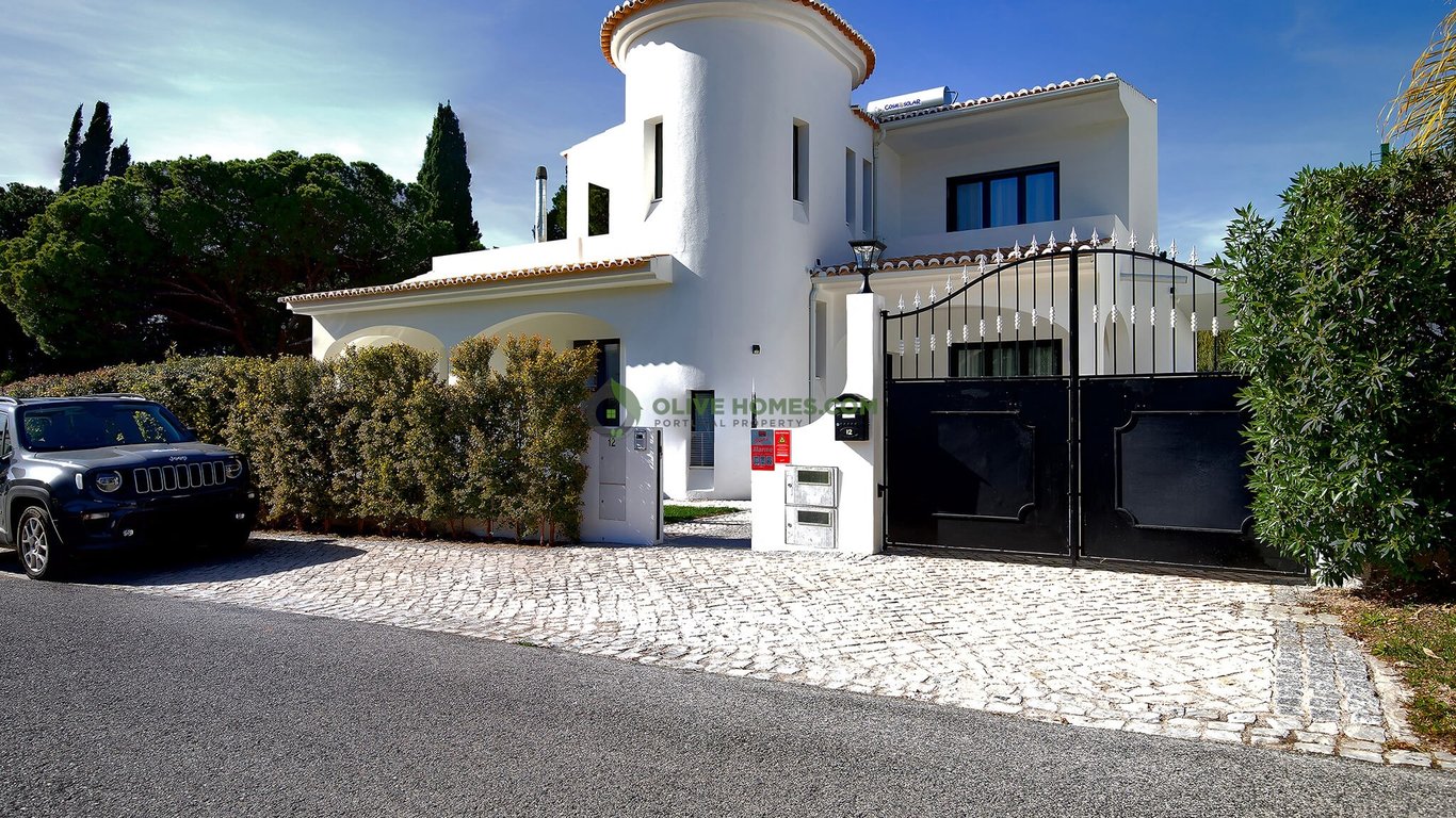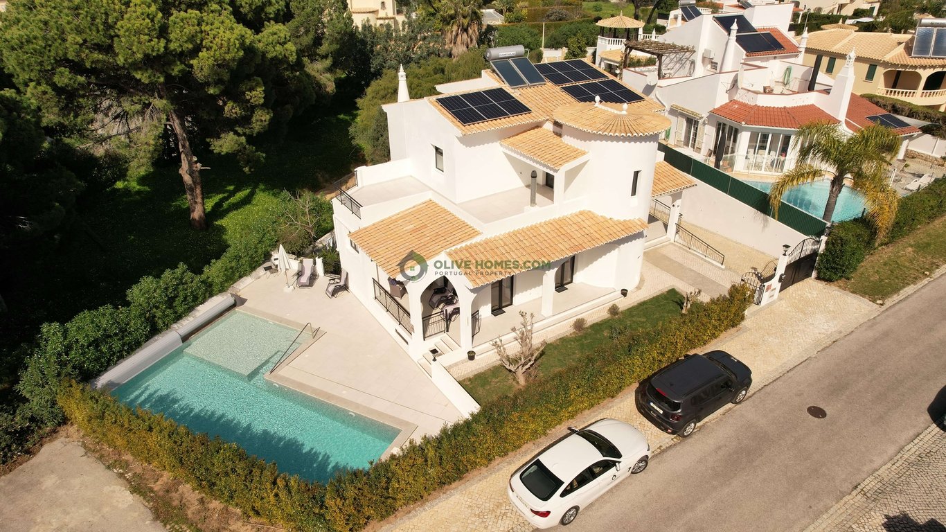 This expansive villa in The Old Village in Vilamoura, offers a harmonious blend of luxury and comfort across three meticulously designed floors. The property boasts four bedrooms, including a generous primary suite, and four bathrooms, ensuring ample space for family living or entertaining guests. The ground floor provides the main living areas. A modern kitchen with sleek black cabinetry, high-end appliances, and a marble-topped island opens to a bright living room, creating an ideal space for...