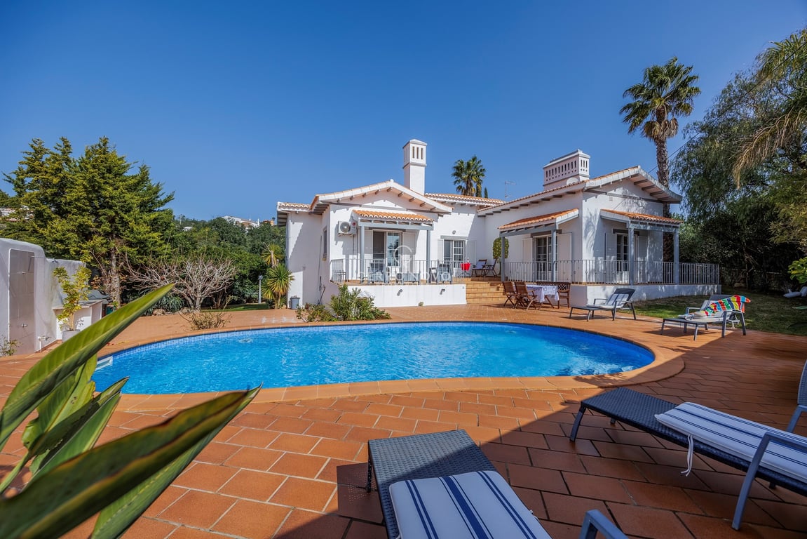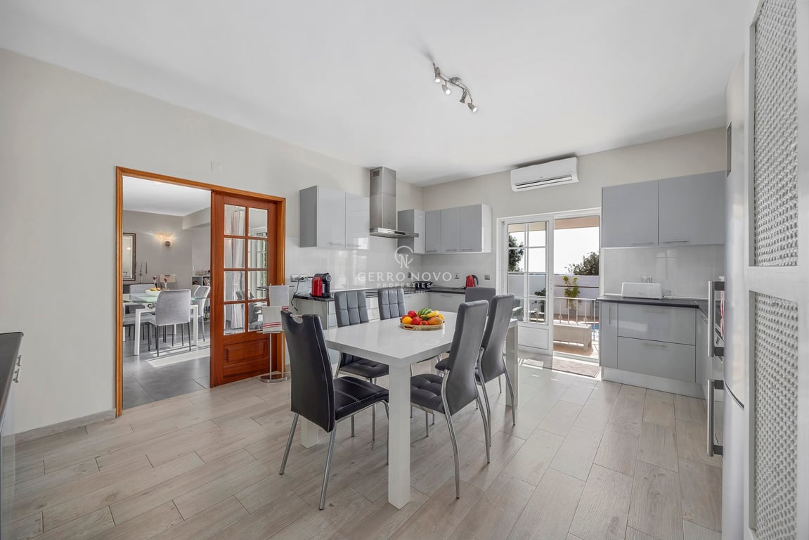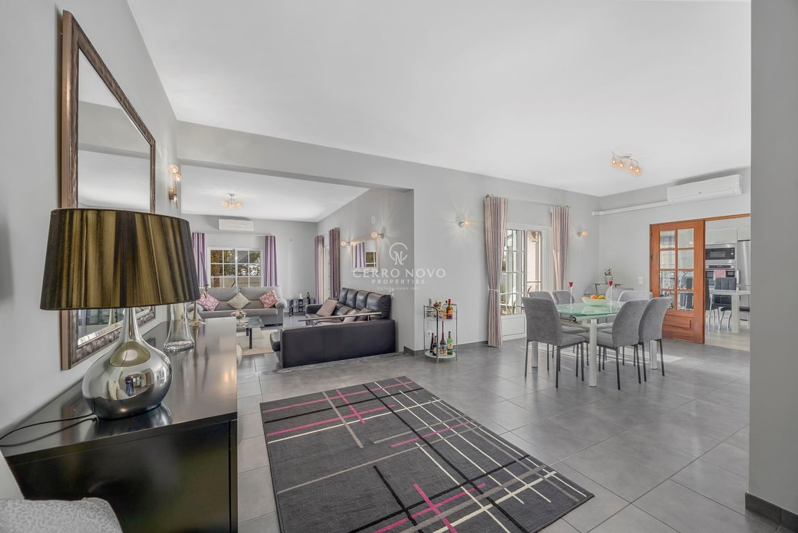 This spacious four bedroom villa is set in a calm area, just a few minutes’ drive from the village of Boliqueime and Vilamoura, offering privacy, comfort, and easy access to local amenities. The property is accessed via automatic gates with traditional Portuguese pavement, featuring exterior parking and a large basement garage. Inside, an entrance hall leads to the main living areas, including a cozy living room with fireplace and a large dining room. The villa has four generous bedrooms, two o...