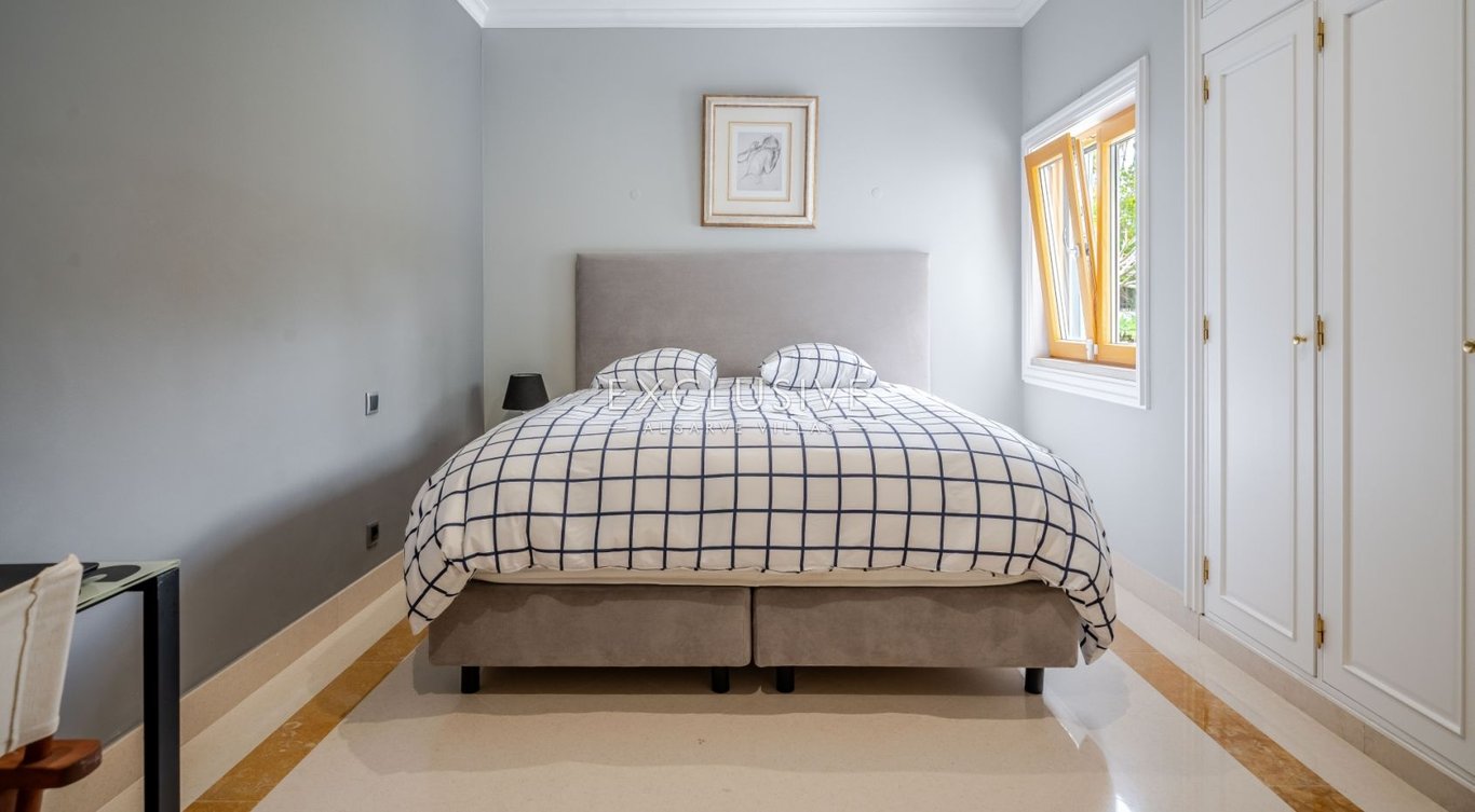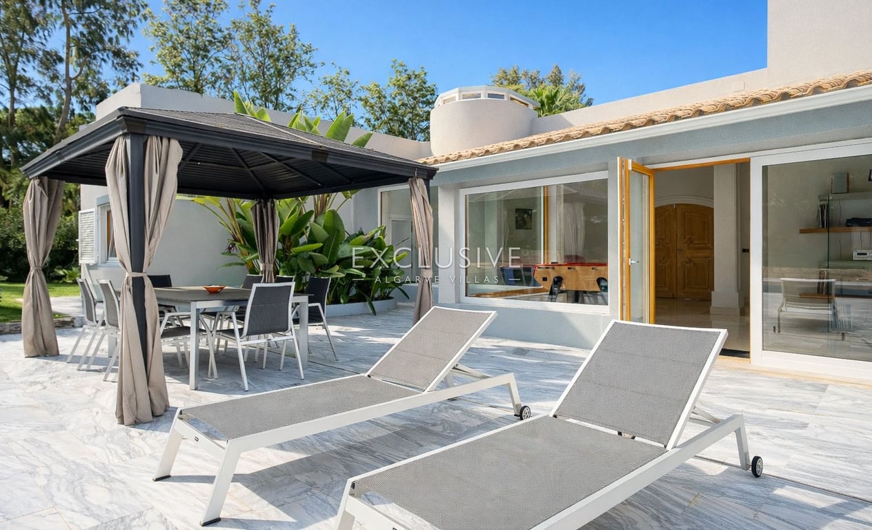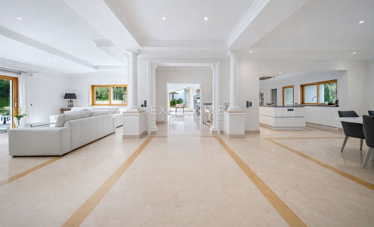 Located in one of Vilamoura’s most prestigious areas, this elegant single-storey, five bedroom villa perfectly blends sophistication, comfort, and an exceptional setting. Nestled beside the renowned Old Course Golf, it offers a serene lifestyle surrounded by nature and exclusivity. The villa features five spacious bedrooms, four en suite, plus a guest bathroom, a home office ideal for remote work, and a large games room. The modern, fully equipped Miele kitchen flows into an open-plan living an...