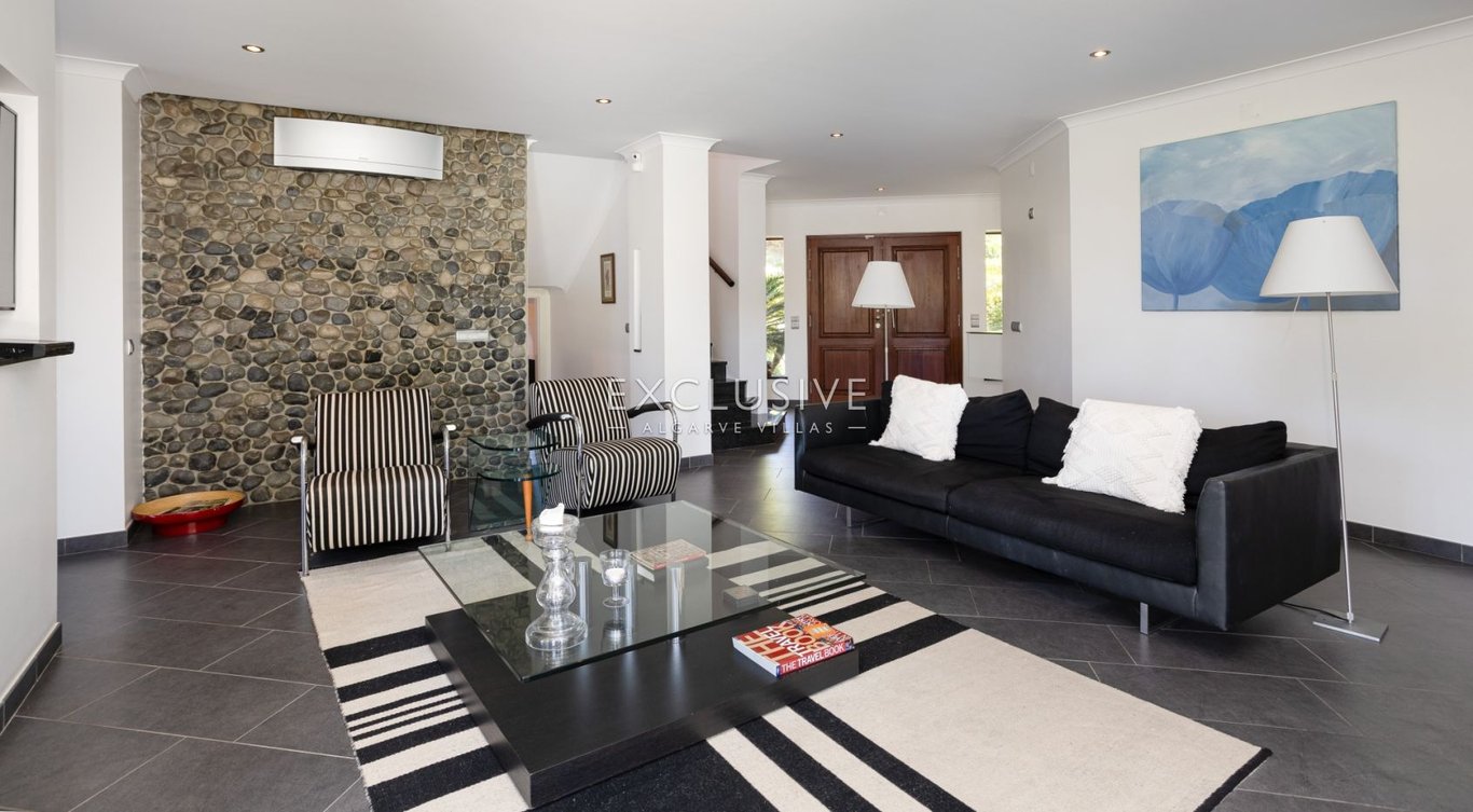This property is a gem located directly on the golfcouse in Vilamoura. the property built on two levels. on the ground floor, there is an entrance hall, living room, kitchen, utility room, one en-suite bedroom, a separate w/c and an office. The top level has two additional bedrooms sharing one bathroon and the master suite. The property is equipped with double insulated windows with mosquitoe nets, air conditioning throughout, underfloor heating in bathrooms, fireplace, and a modern fully equi...