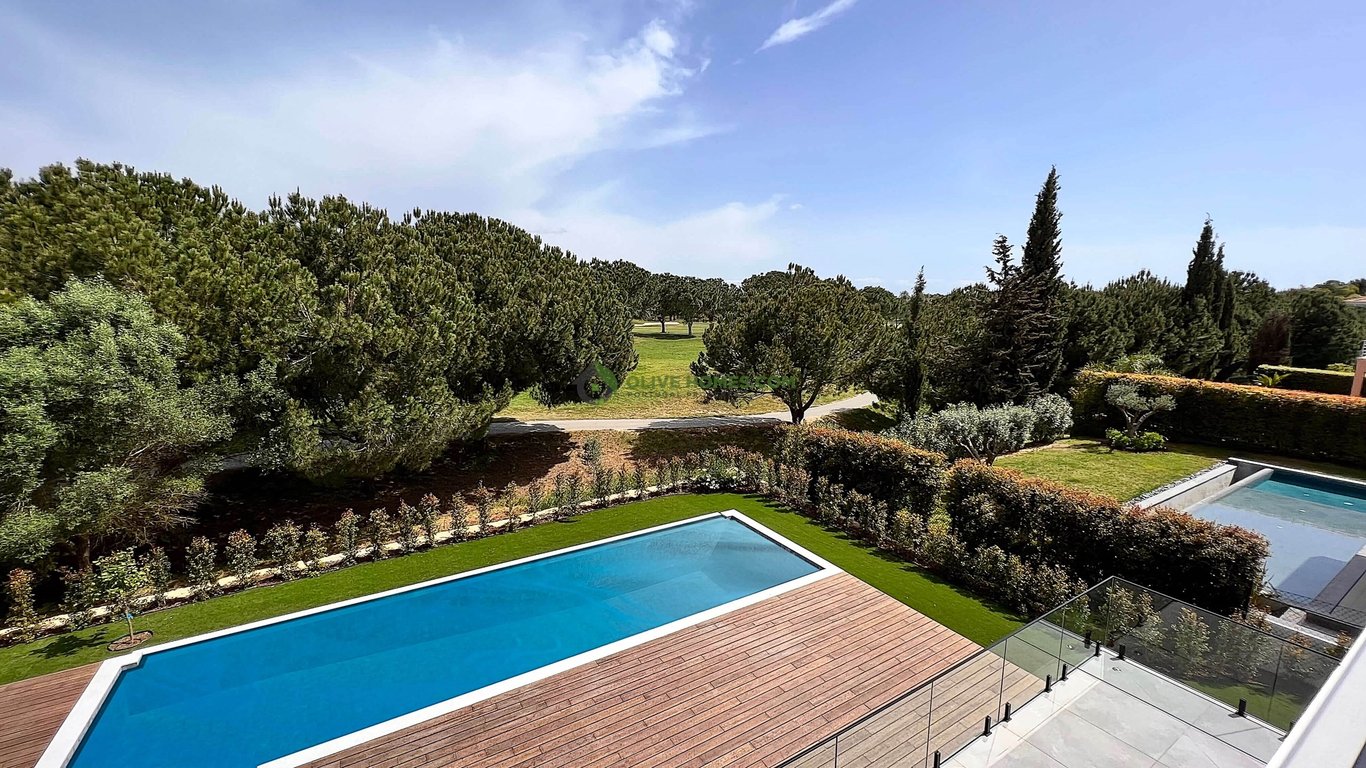 Welcome to your dream home! This brand new modern villa is a true masterpiece of design and luxury, located on the prestigious Millennium Golf course in Vilamoura. The villa boasts four spacious bedrooms, each with its own en suite bathroom, ensuring the utmost privacy and comfort for you and your guests. The balcony overlooks the lush green fairways of the golf course, providing breathtaking views and a tranquil retreat. Spread across three floors, this villa is complete with a garage, a maid...