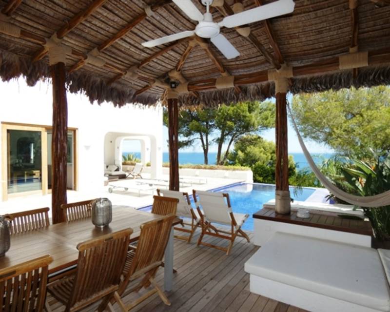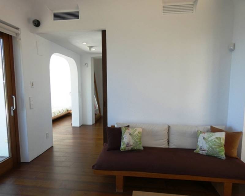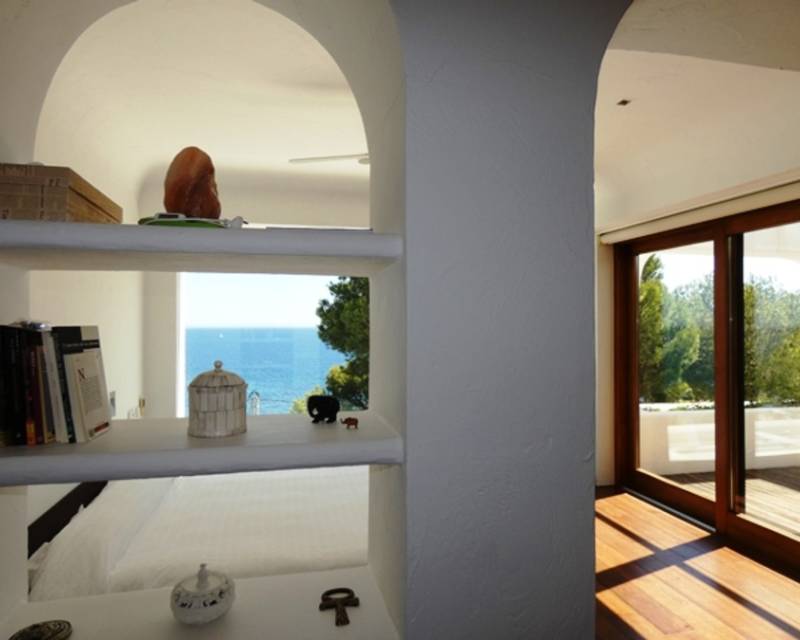 Villa for sale in Las Rotas Beautiful, Ibizan style villa with fantastic sea views, located just a few minutes walk to the sea. Every corner of the property has been carefully thought through, with all rooms having fabulous sea views. The lower entry level is accessed directly from the parking area through a lobby, with a large double bedroom and a stunning shower room. A few steps lead up to the main level, also accessed separately with a double door, with a spectacular lounge with a suspende...