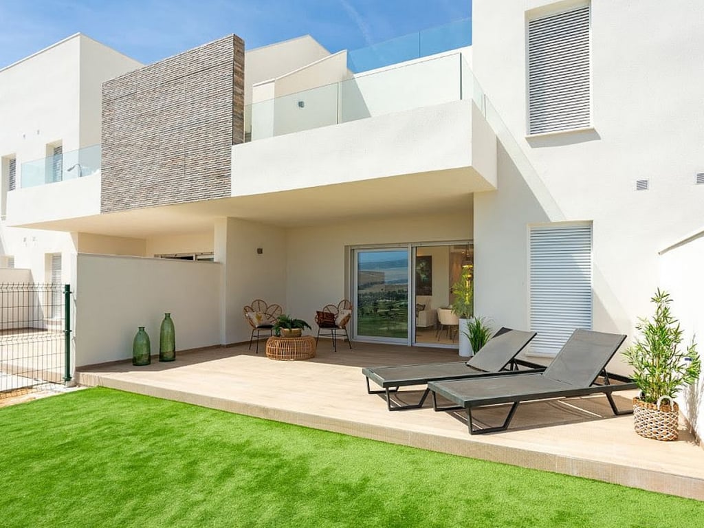 Two and three bedroom maisonette in La Finca Located in La Finca golf resort, Costa Blanca South, these ´Zante´ maisonettes form part of the Mar Egeo residential. This residential complex features various types of properties such as maisonettes, semi-detached houses and different models of villas. These bright newly built maisonettes are distributed over two floors. The ground floor maisonettes offer a large terrace and the top floor have an incredible solarium. There are also beautiful c...