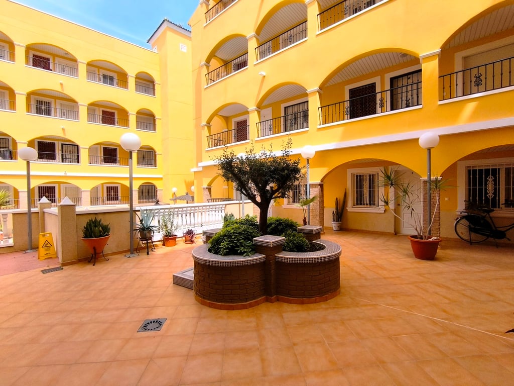Located on the ground floor of what is arguably one of the best blocks in the Fontana Complex in Algorfa village - with the most fabulous sun drenched terrace. On entering the apartment you will find a very useful utility room and an American style kitchen with a range of wall and base units, built in oven/hob, freestanding fridge freezer and washing machine. There is a breakfast bar viewing through to the living area. The open plan living and dining area is light and bright with sliding ...