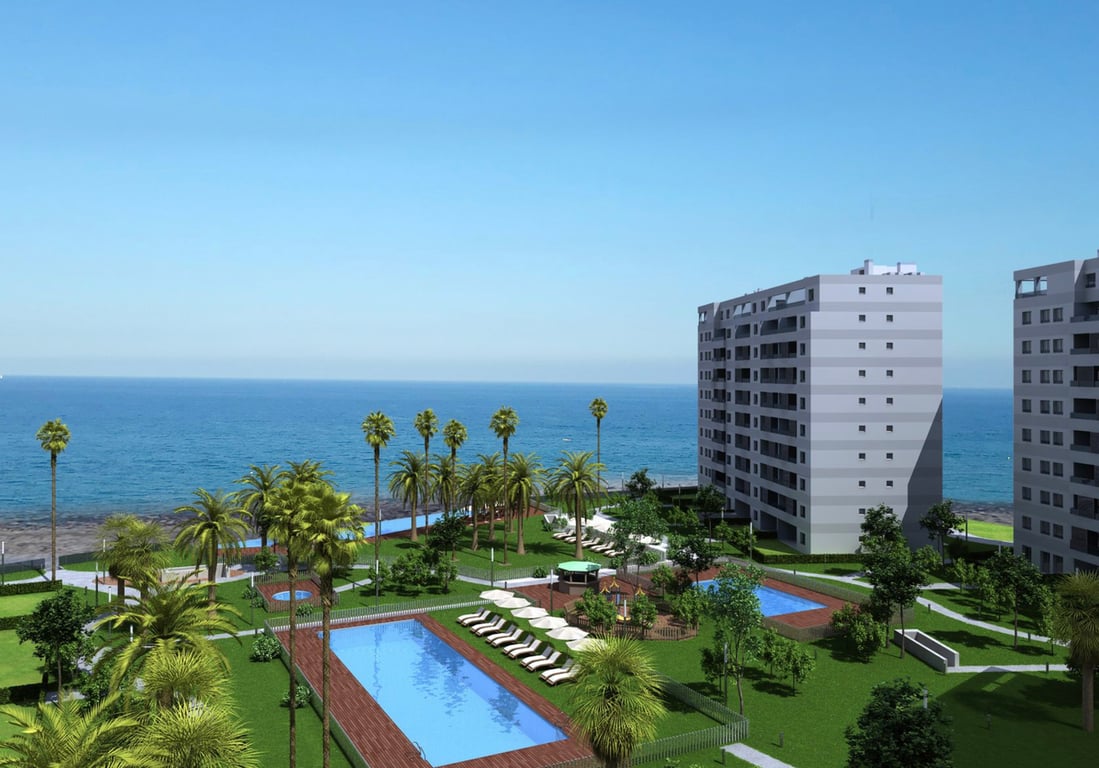 New Build, seafront apartment development in Punta Prima, Torrevieja, with spectacular views over the sea and the beach. The residential development offers 2 and 3 bedroom apartments with 2 bathrooms. All apartments in the first phase are south facing and have good sized terraces and magnificent views over the Mediterranean Sea. The apartments have been designed for comfort and convenience, with excellent qualities and a layout that allows maximum enjoyment of the communal areas of the developme...