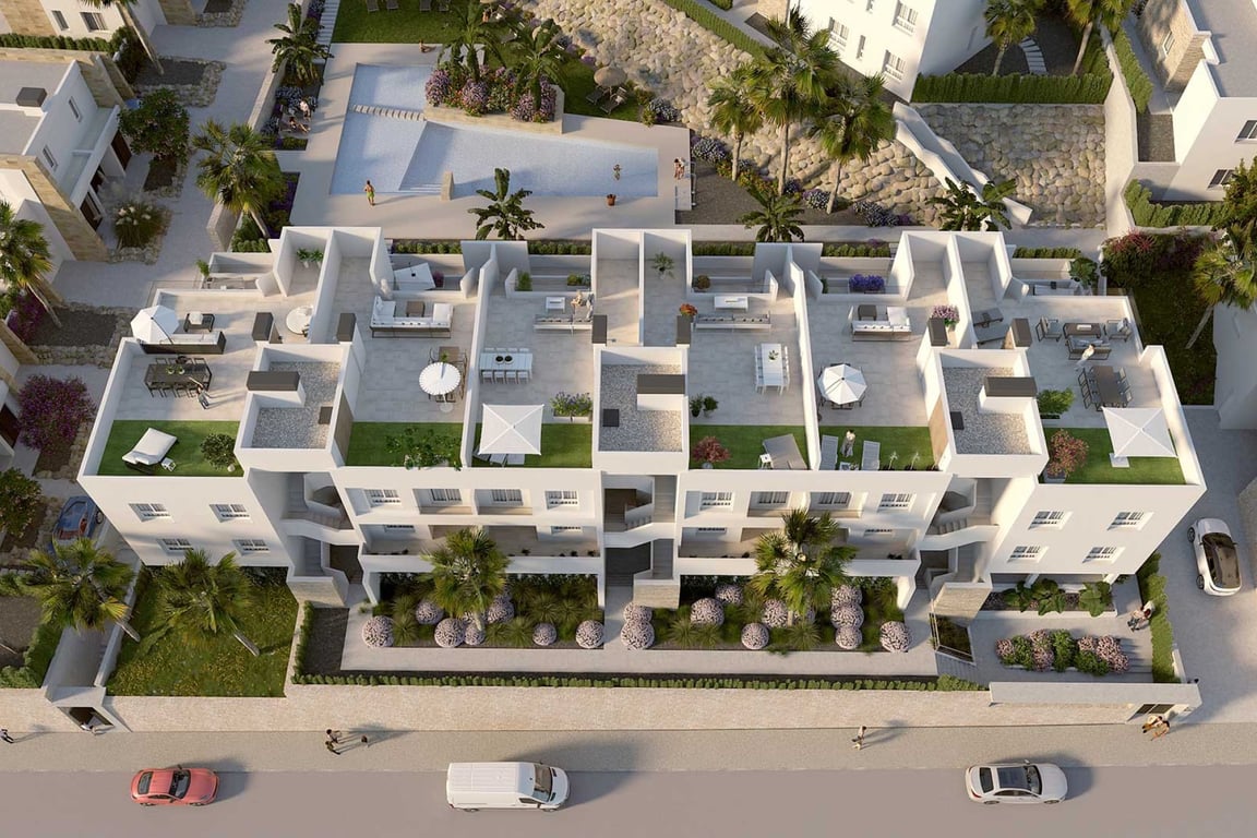 Located in La Finca Resort, an exclusive and privileged place in Costa Blanca South, we find the Zante apartments in our new Residential Mar Egeo.These bright apartments of 2 or 3 bedrooms are distributed in three blocks of two floors each. The first floor model has a private garden and the penthouses have a large solarium, both with access from the living room. Its magnificent modern style kitchen with top quality materials is designed to meet all your needs in terms of design and functionality...