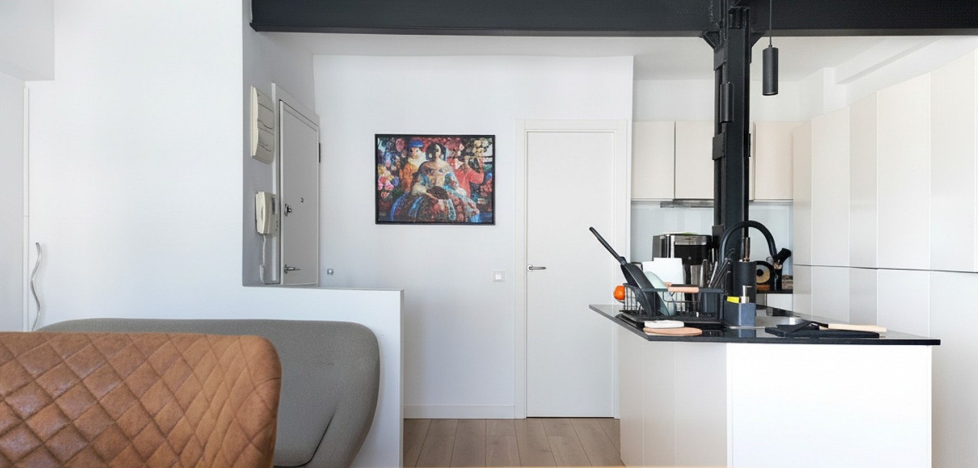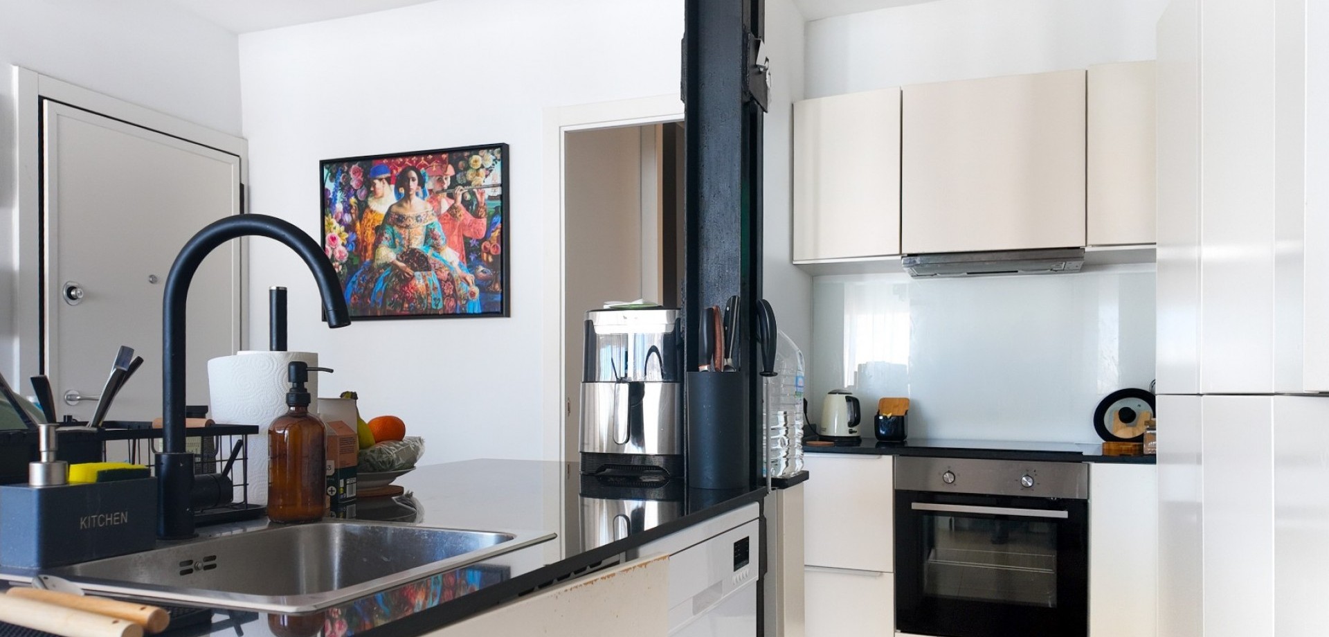 Beautiful fully renovated apartment located on the 7th interior floor with lift access. Bright, quiet, and featuring a modern and functional layout that maximizes space. Layout and features: 2 en-suite bedrooms, both with private bathrooms Master bedroom with spacious walk-in wardrobe Second bedroom with practical open storage area (ideal as additional storage space) Large open-plan American-style kitchen integrated into the living area S...