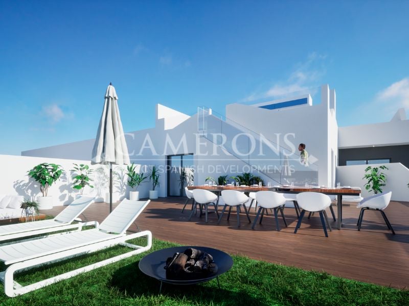 We are pleased to offer this new modern residential in the popular village of Benijofar, boasting 2, 3 or 4 bedrooms and 2 bathrooms.The penthouses also have a large private solarium, here you can enjoy the beautiful summer sunsets. In addition, the residential has a large green area with a swimming pool for all owners, as well as optional parking.Located just a short walk from all the amenities of Benijofar and close to the busier Quesada area of the Costa Blanca South. The stunning beaches of ...