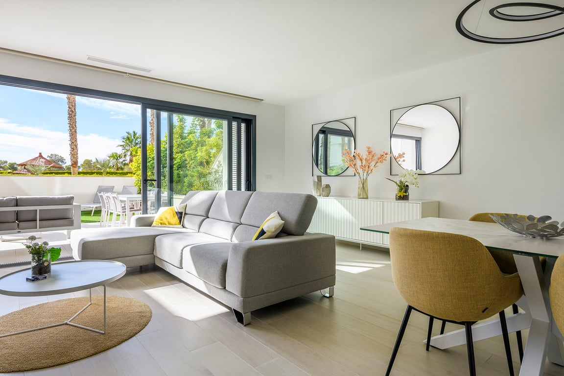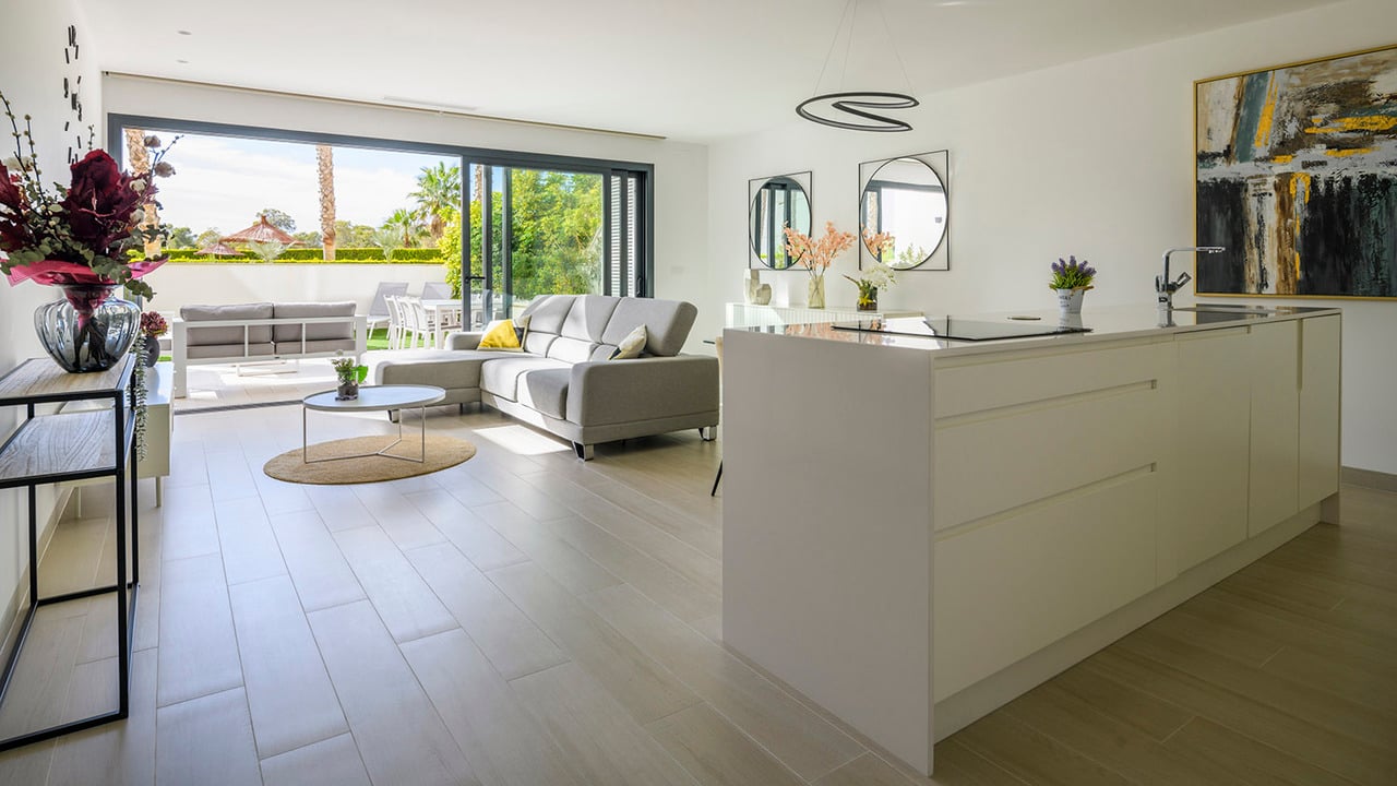 The Hinojo Community has spacious apartments where the combination of design and functionality stands out thanks to the materials, colors and textures selected. The interior and exterior of each apartment merge to form a continuous space where you can enjoy the Mediterranean lifestyle. The apartment has a living room-kitchen overlooking a large terrace with wonderful views to the outside. The apartment has 2 bedrooms and two bathrooms, one of them en-suite. The common areas of the Hinojo Communi...