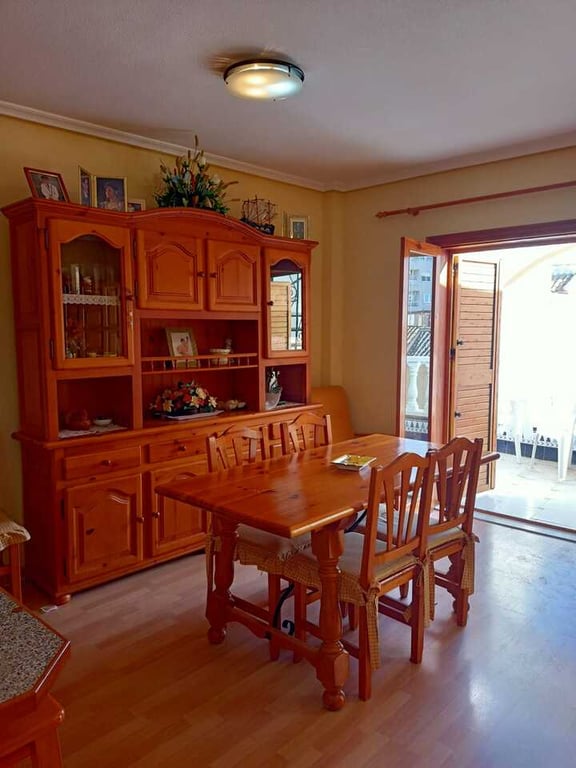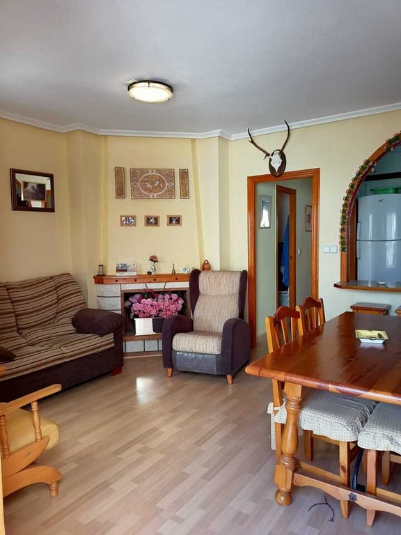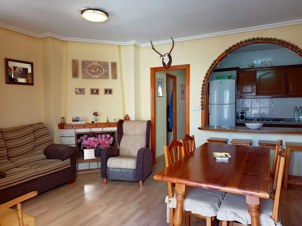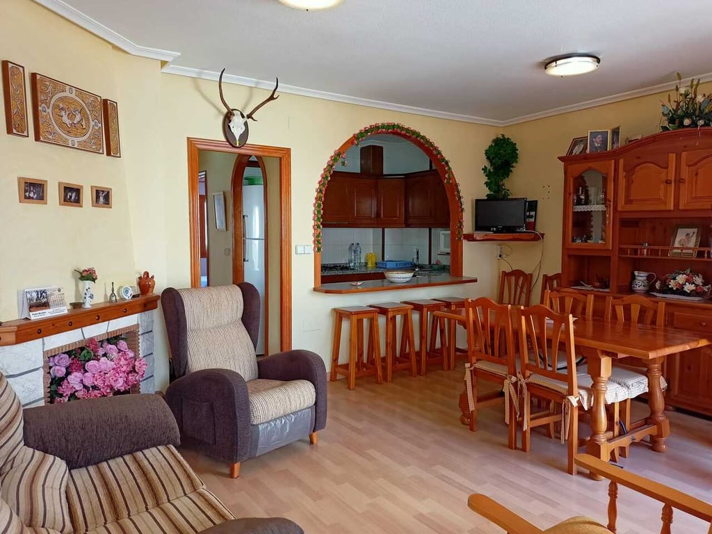 Great apartment with 2 bedrooms, 1 bathroom, living room with chimney, a separate big American style kitchen. It has a terrace on the main floor, another glassed back terrace and big private roof terrace.Only a 10 minute walk to Playa de Los Locos.Good rental potential.