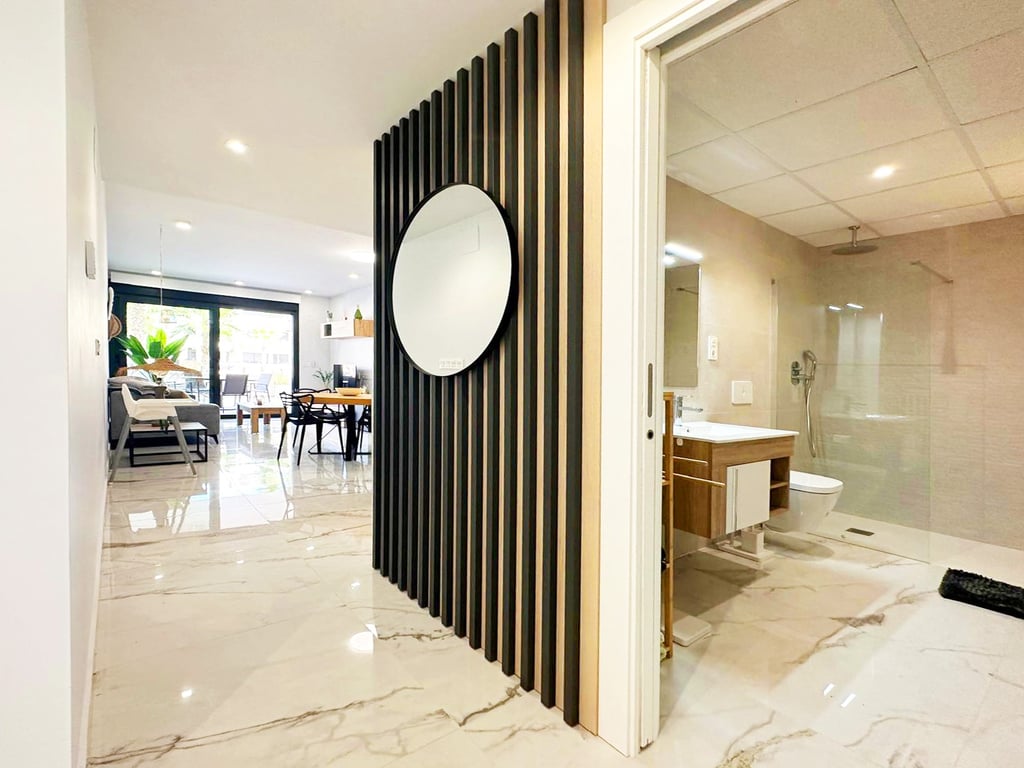 Los Altos Modern 2 bed 2 bath ground floor apartment for sale located in Amanecer with gym,communal pool, boules court and gardens, includes underground parking. >>>>>>>>>>>>>>>>>>>>>>>>>>>>>>> This beautiful, fully furnished luxury apartment, built in 2023, offers the best lifestyle in a privileged setting. Greeted by a bright and welcoming atmosphere, due to its east/west orientation, the apartment, located on the ground floor of the building, offers a living room with 2 accesses to the outdo...