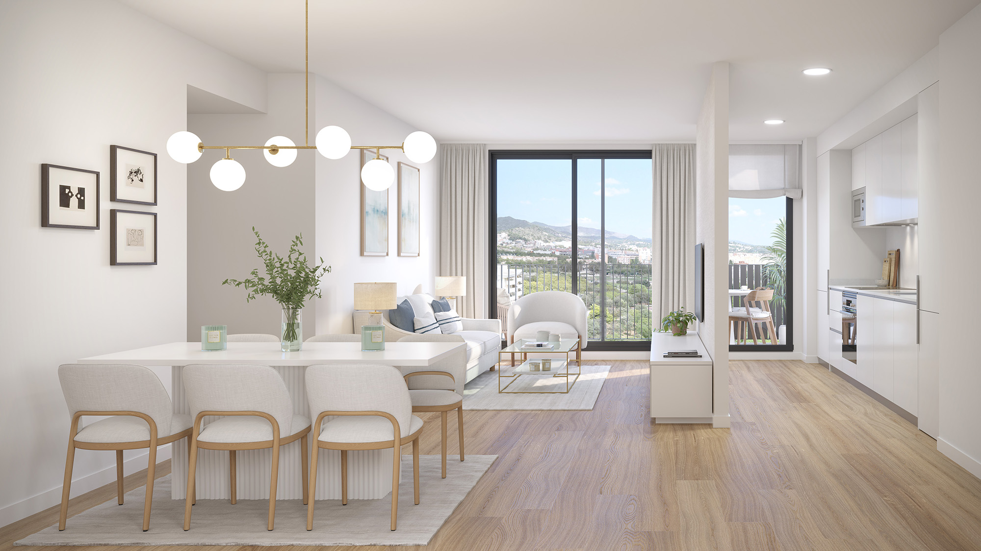 Discover Mesmer, development in Badalona in a privileged residential area, where you can enjoy a wonderful swimming pool, communal area and unobstructed and spectacular views of the Montigalá park. All homes offer large terraces and spacious interiors. Enjoying the energy efficiency offered by our new homes is possible without giving up the usual environment. Discover how our homes adapt to a better future, full of comfort, elegance and energy savings. *Prices do not include parking or storage...
