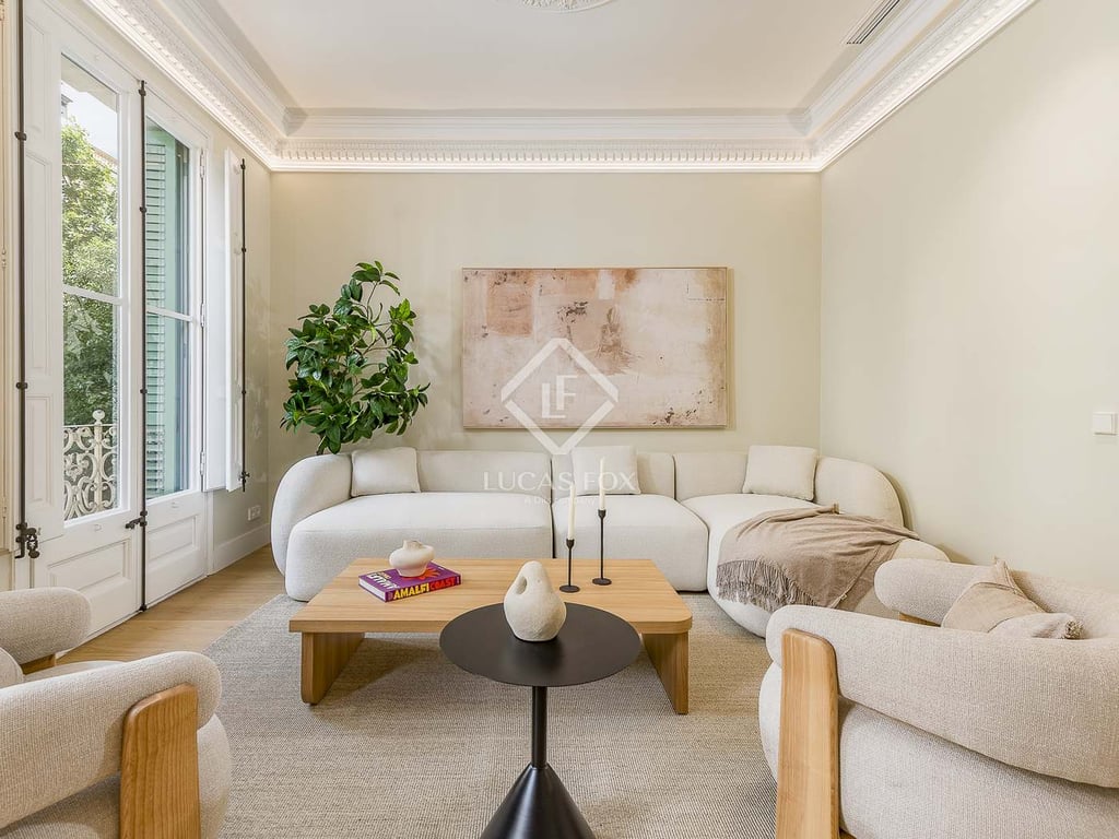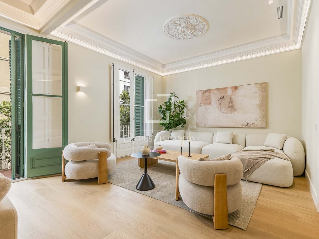 This unique property perfectly blends modernist charm with contemporary design. A rare opportunity to own a piece of Barcelona’s architectural heritage, completely renovated to meet the highest standards. Situated on a bright second floor with dual orientation, the apartment enjoys abundant natural light throughout the day. The layout is smart and refined, offering generous, stylish, and functional spaces. It features three spacious double en-suite bedrooms, each with its own full bathroom....