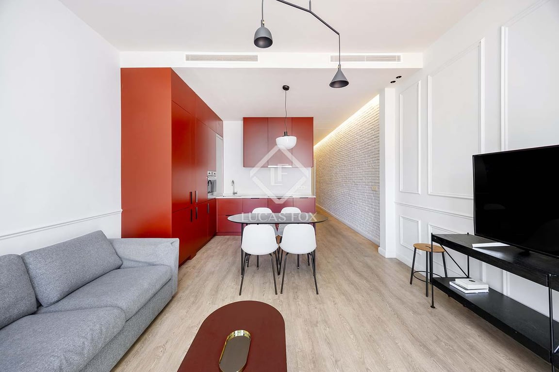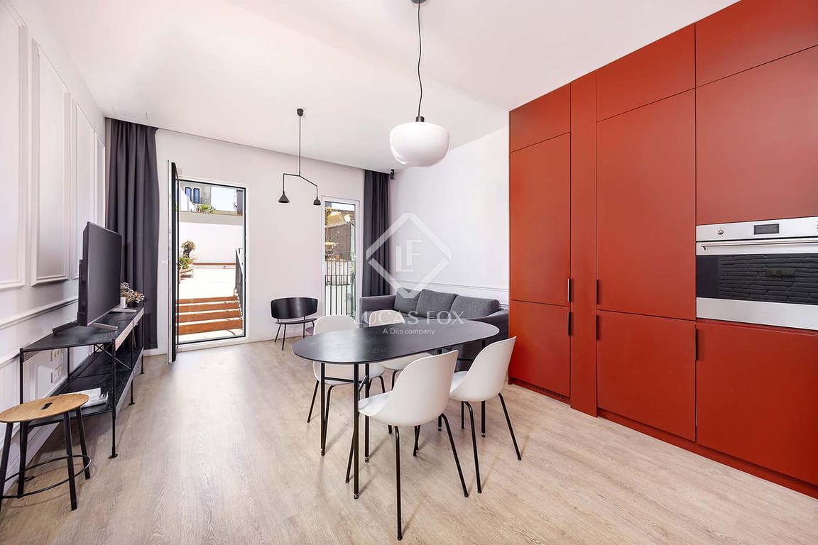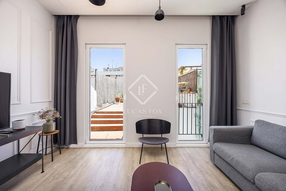 Completely renovated apartment for sale in Vila de Gràcia, close to the best restaurants, shops and bars in this fashionable neighbourhood of Barcelona. Only one flight of stairs takes us right to the apartment. On the left, we find the main bedroom exterior with a private bathroom. Down the hall to the right, we find the second double bedroom and a second bathroom. The living room has a modern and open kitchen, indirect led lighting and access to the large terrace. The property has impecc...
