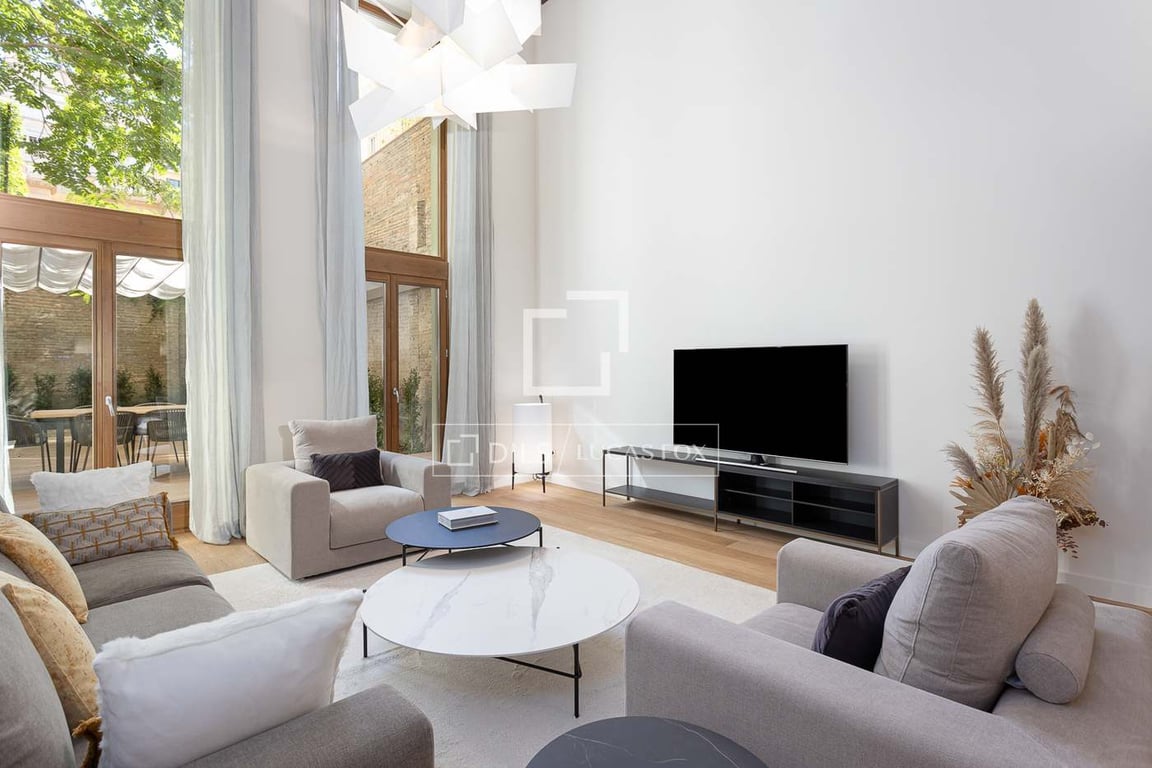This stunning duplex is part a brand new development in central Barcelona. In a listed building with period features and façades, the development encapsulates Barcelona's history whilst promoting modern living. It is a central yet peaceful setting, overlooking Carrer de Pau Claris and the tree-lined pedestrian walkway Pasaje Mendez Vigo. Furthermore, with the exclusive Passeig de Gràcia just one block away, this really is a privileged postcode. This ground-floor duplex apartment offer 3 bedroo...