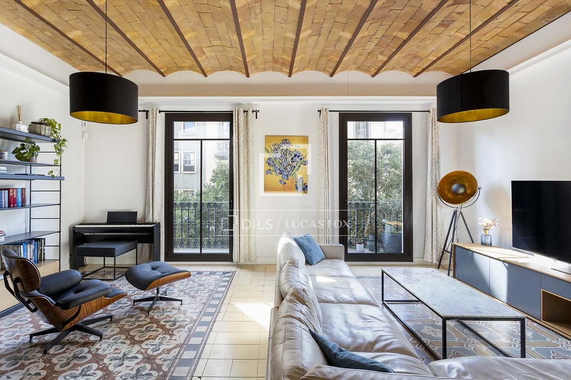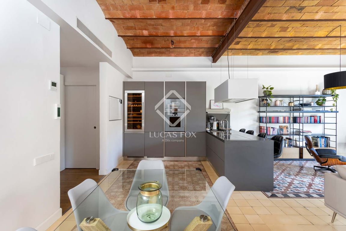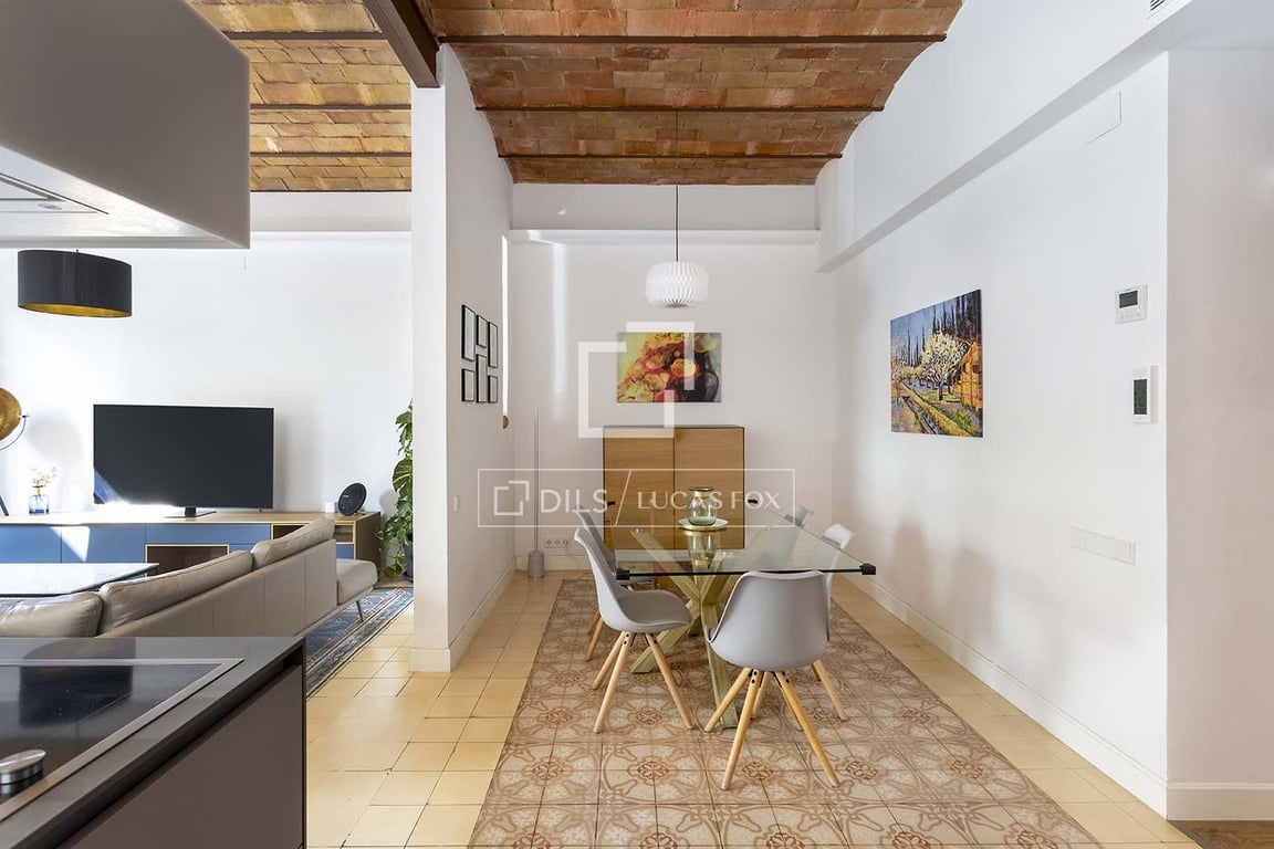Beautifully renovated, fully furnished apartment for sale in an unbeatable city centre location, next to Plaza Cataluña and the exclusive Paseo de Gracia. The apartment has been thoughtfully renovated to maintain the classic style including the typical Catalan vaulted ceiling and original tiles. Large, open spaces and high ceilings create a bright and spacious property. The apartment has been renovated to a high standard; the spacious living area with a HD TV leads onto an open Arclinea kitche...